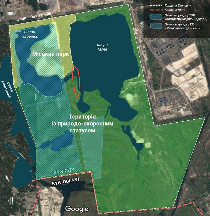 “Усі роботи ведуться в межах ландшафтного заказника місцевого значення “Озеро Тягле”. Роботи із засипання каналу між озерами та прокладання дороги ведуться далеко вглибині заказника (…) щонайменше за 100 м від земельної ділянки, яку намагається забудовувати “Столиця Груп”, – повідомили активісти у фейсбуці.