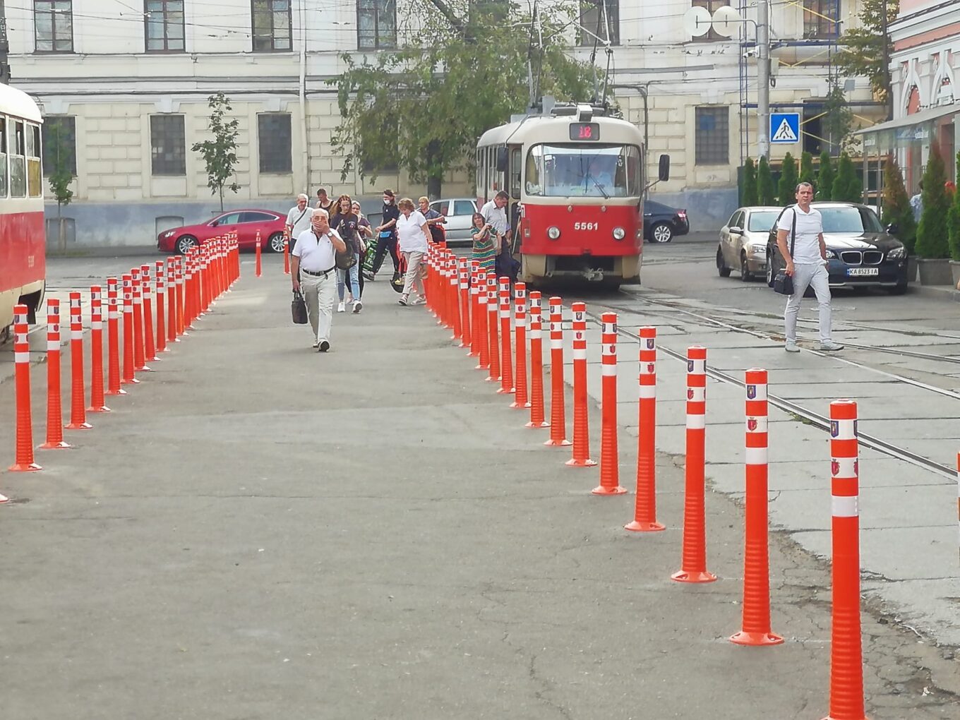 Делініатори запобігатимуть утворенню стихійних паркінгів на трамвайних коліях. Фото: Станіслав Шепелев