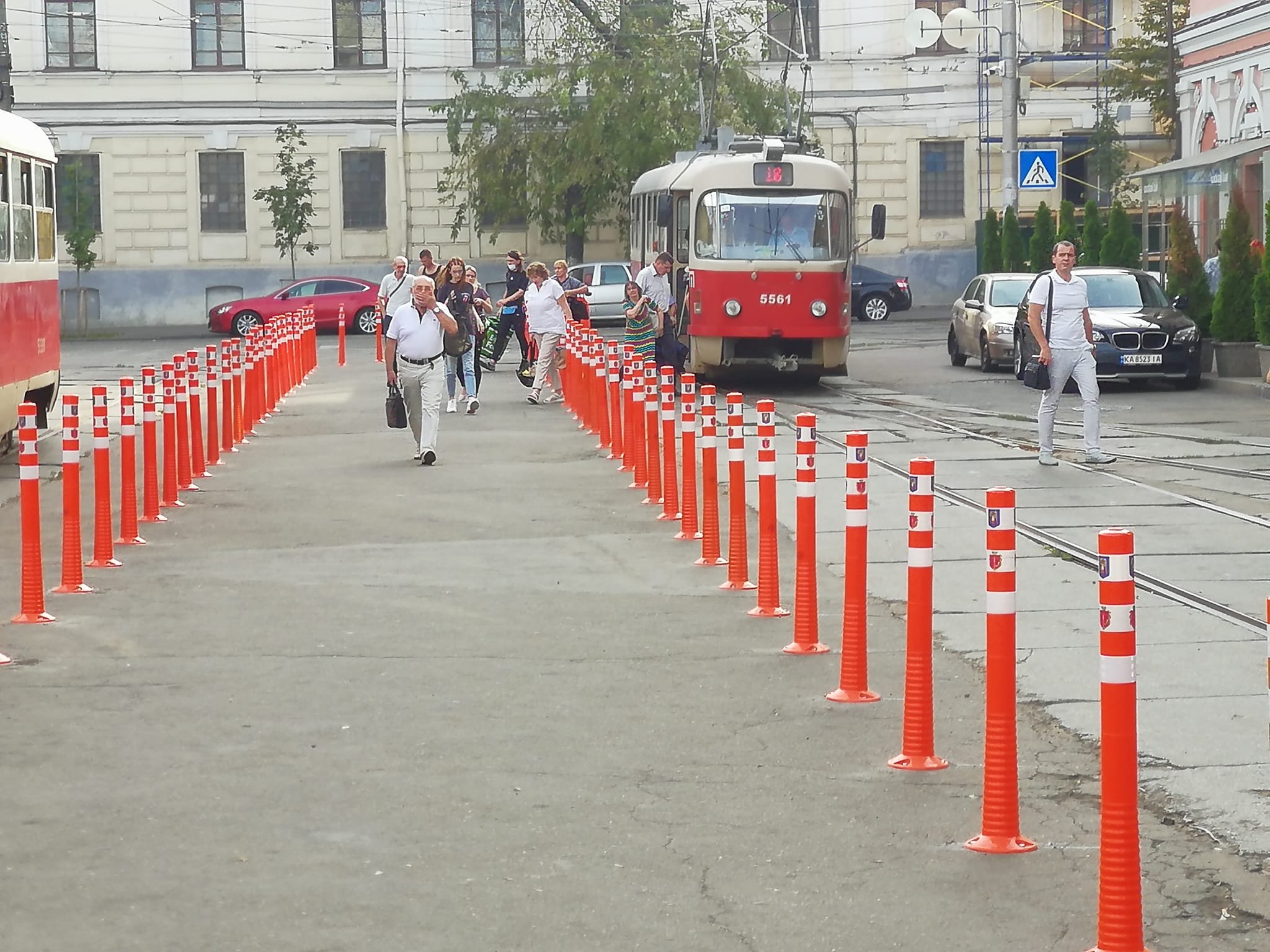 Делініатори запобігатимуть утворенню стихійних паркінгів на трамвайних коліях. Фото: Станіслав Шепелев