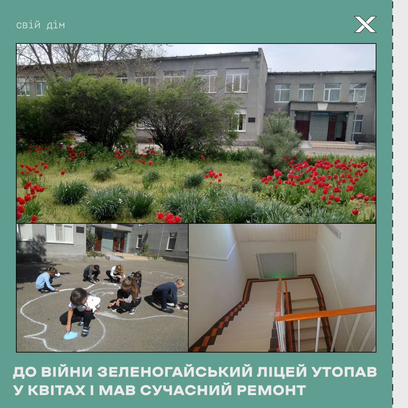 Наразі Зеленогайський ліцей працює в режимі онлайн. Масштаби руйнувань катастрофічні, але всі сподіваються на його відбудову.