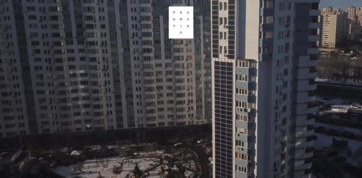 У Києві на проспекті Миколи Бажана, 16 на фасаді багатоповерхівки жителі встановили сонячні панелі, завдяки чому вони тепер економлять на електроспоживанні та опаленні.