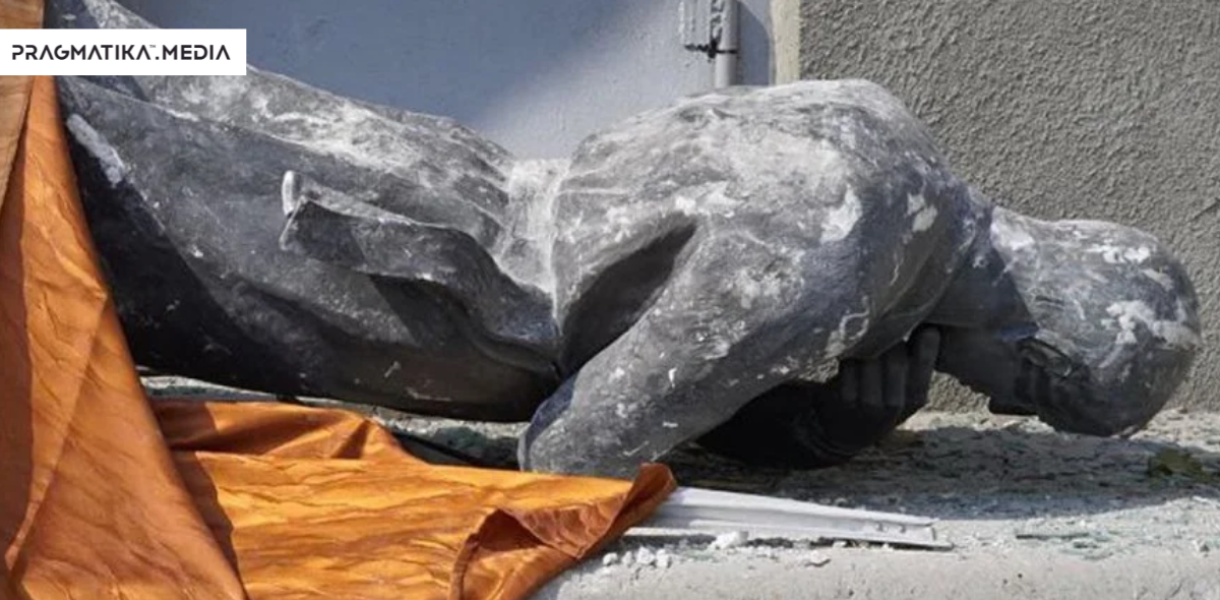 Знайшли під завалами: після обстрілу Харківського педуніверситету дивом уцілів пам’ятник Сковороді