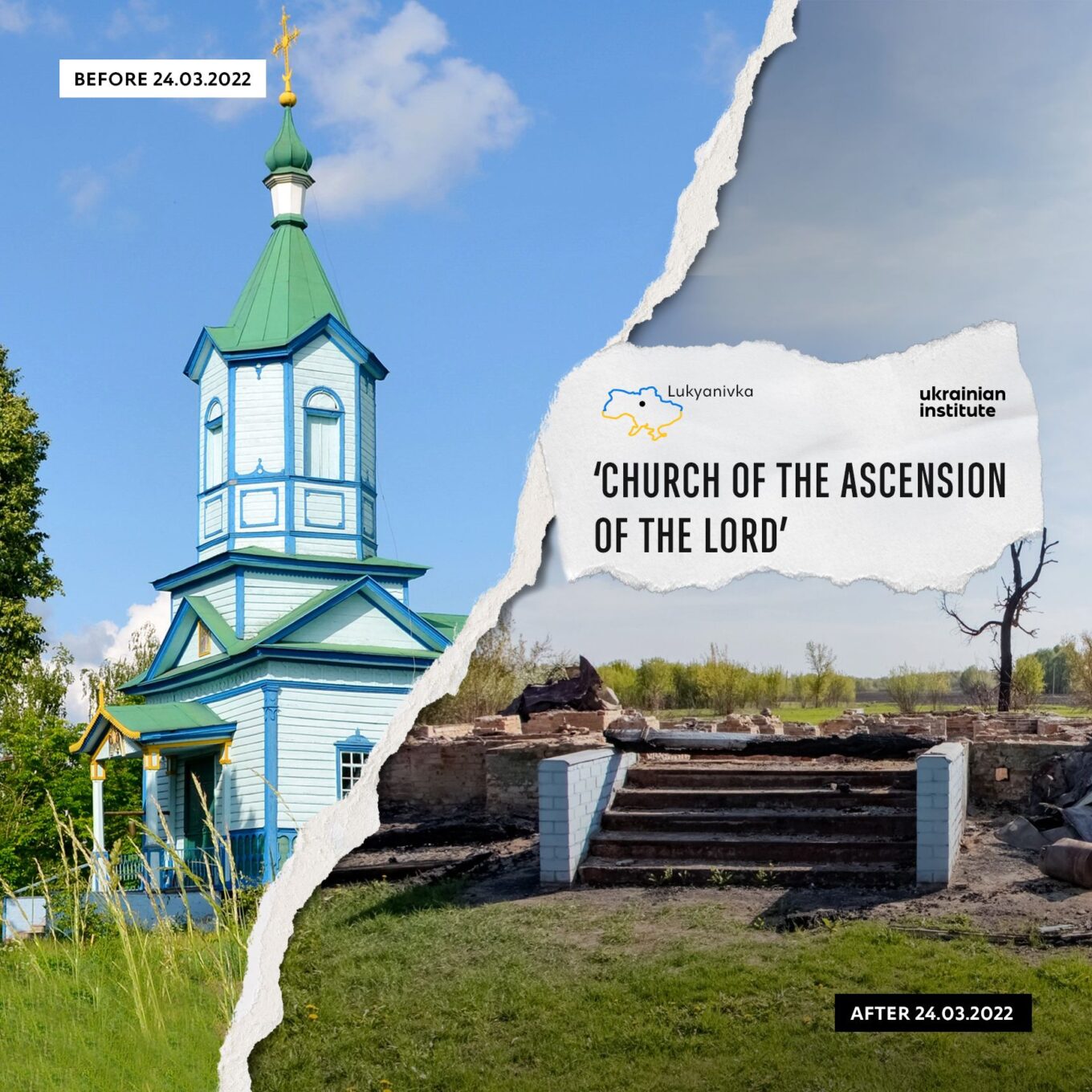 Варто зазначити, що від початку повномасштабного російського вторгнення на територію України було знищено 388 об’єктів культурної спадщини. Серед них – вщент зруйнований Храм Вознесіння Господнього, рідкісна памʼятка українського деревʼяного зодчества 1879 року, що був розташований у селі Лукʼянівка на Київщині.
