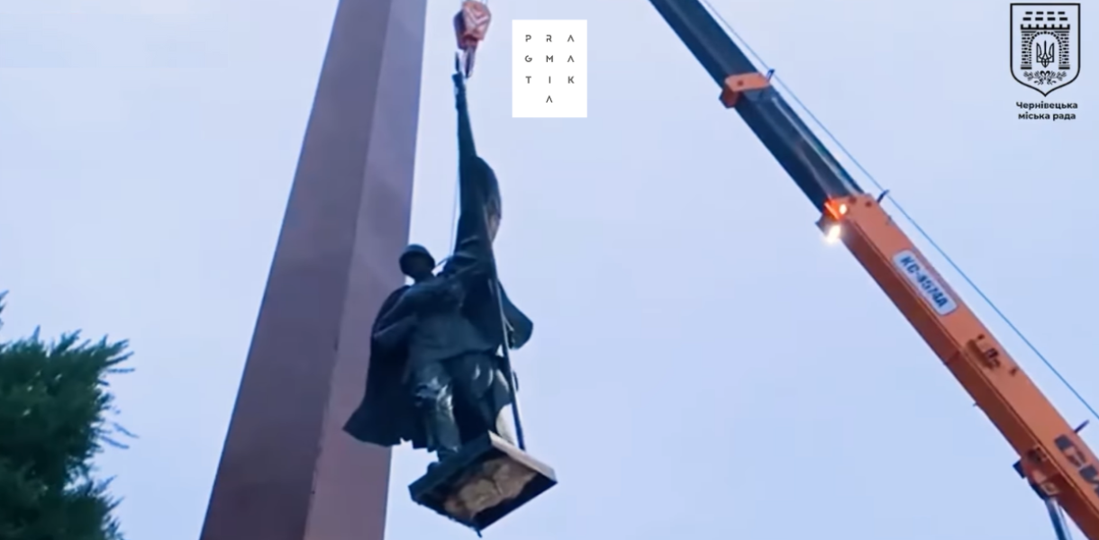 “Зняли всього за годину”. У центрі Чернівців демонтували пам’ятник червоноармійцю
