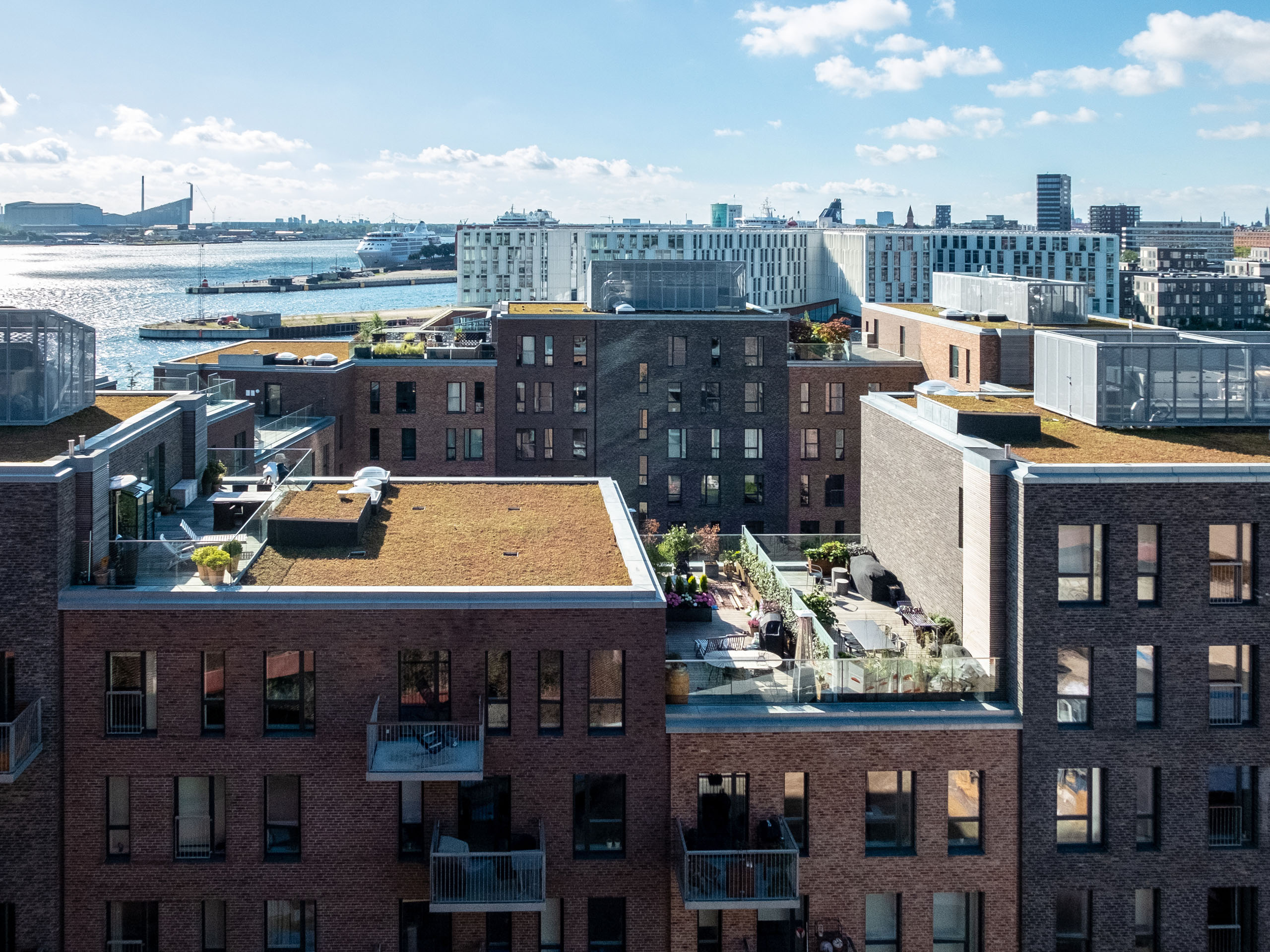 Большинство уже построенных жилых зданий Нордхавна малой и средней этажности спроектированы в стиле, традиционном для скандинавской архитектуры, — это сдержанная эстетика с использованием темного кирпича, вкраплениями обугленного дерева и корродированного металла. Такие кварталы служат идеальным фоном для инновационной архитектуры.