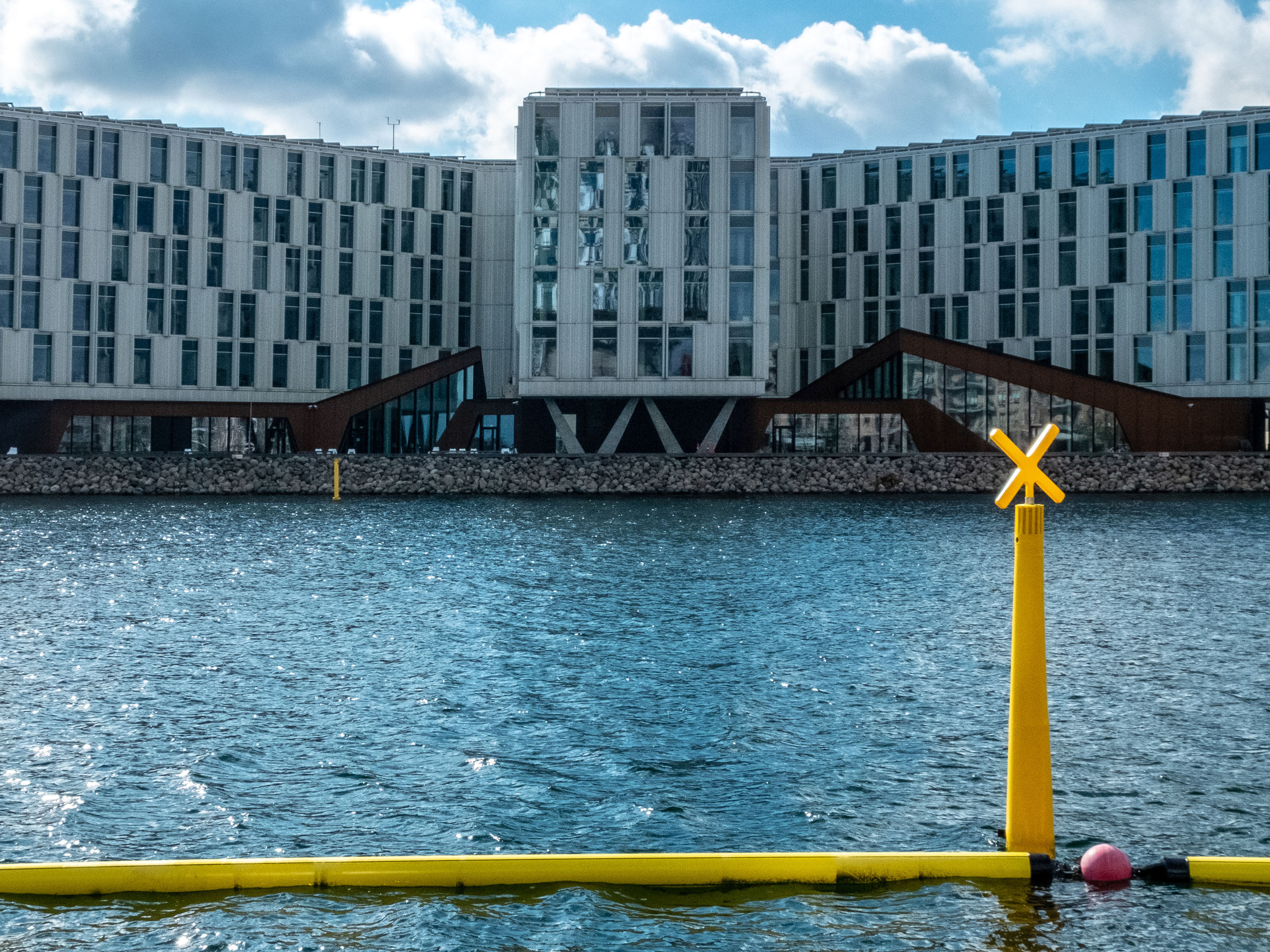 Залив между кварталами Орхусгад и Мармормолен — это водная рекреационная зона для купания и катания на маломерных лодках
