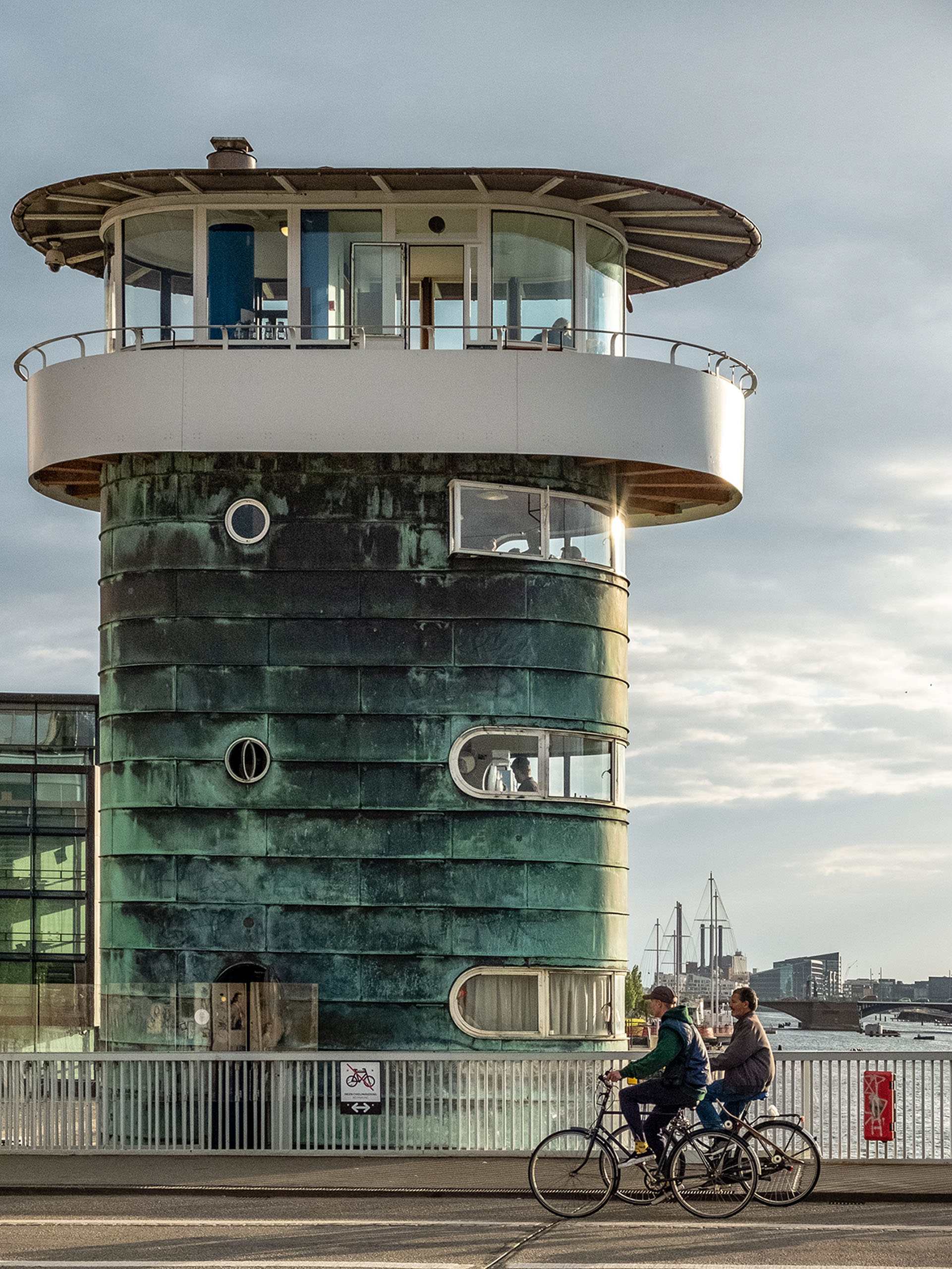 Необычное офисное здание, вернее, пара, недавно появилось прямо напротив UN City, через залив, в квартале Орхусгад. Две бетонные 59‑метровые силосные башни для хранения зерна, возведенные в середине XX в., были перепроектированы в офисные здания, которые теперь называются Portland Towers. На семи этажах расположены офисы как крупных, так и сравнительно небольших компаний.