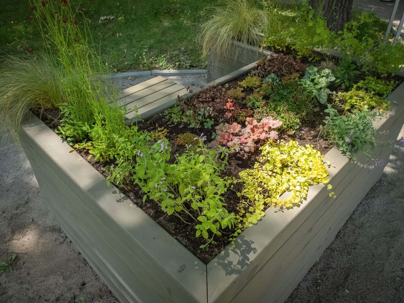 Модульна піднесена клумба — частина інклюзивного проєкту «На відстані серця», створена для людей, які пересуваються на візках або мають проблеми з мобільністю. Фото: Андрій Вєтошкін
