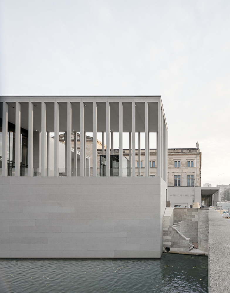 Современный минималистичный дизайн Дэвида Чипперфилда поддерживает ритмический рисунок дворцовой архитектуры XIX – начала XX века, логически продолжая идеи Шинкеля, Штюлера и их последователей – Альфреда Месселя и Людвига Хофмана, создавших оболочку для Пергамского алтаря.