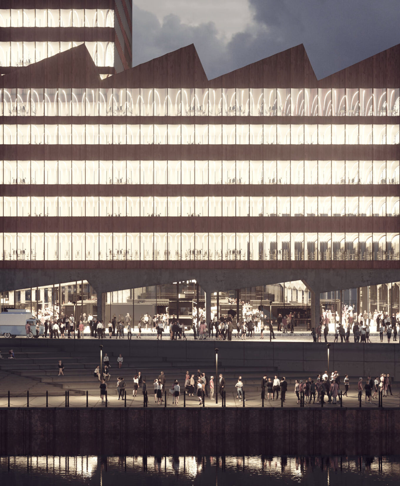 Червона цегла та стрічкове скління Europahafenkopf Zechhaus — омаж промисловій історії місця. Джерело фото: Cobe