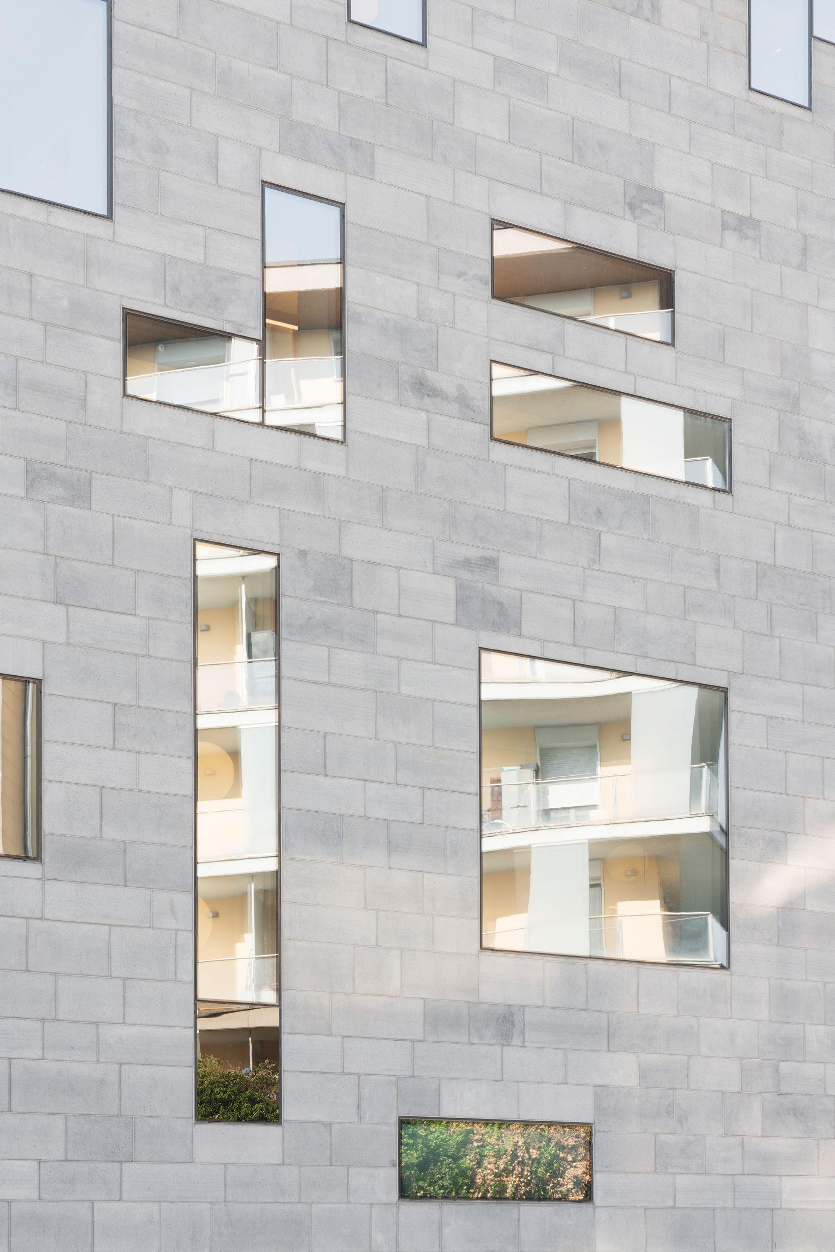 Монолітний об’єм із червоного бетону натхнений портовими складами. Сідлоподібна покрівля (сучасне прочитання локальних архетипів) не декоративна, а функціональна: вона оптимізує природне освітлення. Всередині — відкрите планування, великі прольоти, панорамні види на гавань. І в цьому випадку так само фасадні системи Schüco стали технічною основою: FWS 60 SI забезпечує стрічкове великоформатне скління з високими теплоізоляційними показниками (U до 0.8 Вт/(м²К)), кастомні модулі SFC 85 SI адаптовані до масивних бетонних площин і складного даху.