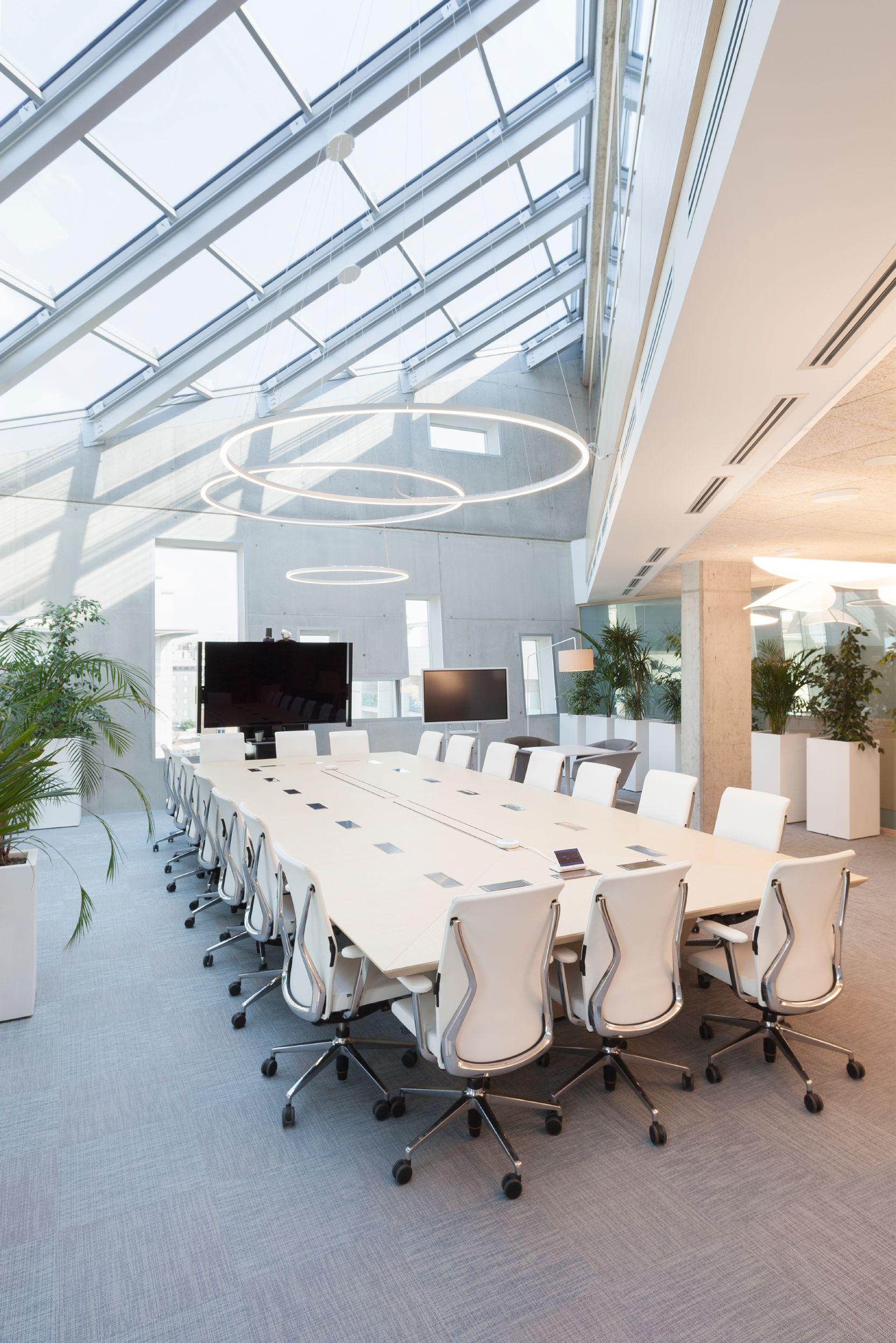 Ключову роль у цій алхімії відіграють кастомні фасадні рішення компанії Schüco: система SFC 85 забезпечує структурну стійкість для великих прольотів і консолей; FWS 60 інтегрує стрічкові горизонтальні вітражі, утворюючи цілісну оболонку будівлі. Ці системи в комплексі з геотермальними тепловими насосами та установкою рециркуляції води є складовими частинами енергоефективності найвищого рівня: Gruppo CAP Headquarters — це споруда zero-emission із сертифікатами LEED Gold і Net Zero Energy Buildings, що генерує енергію, а не лише споживає її.
