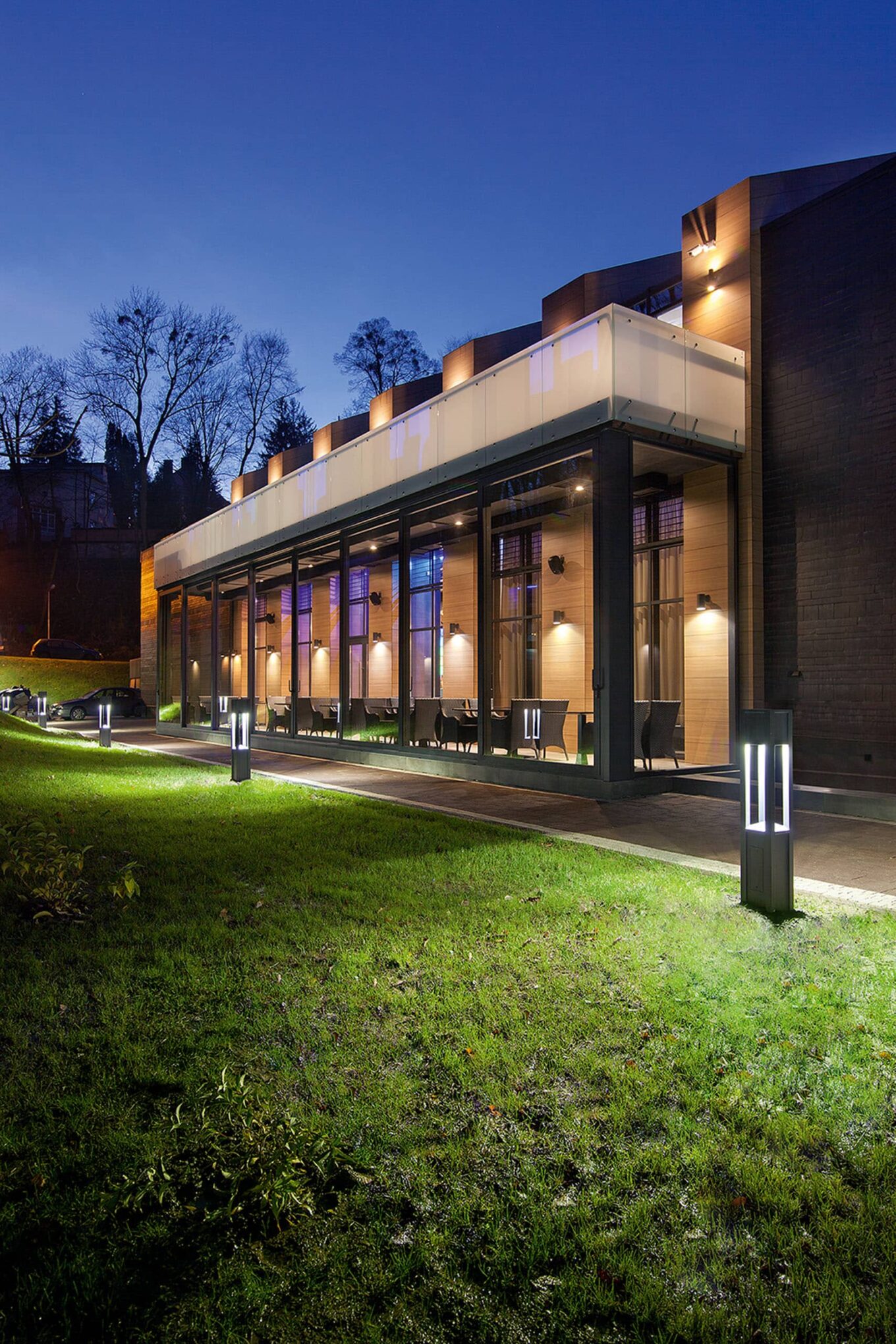 Благодаря качеству и несущим свойствам алюминиевых систем Reynaers, команда смогла установить раздвижную систему общей протяженностью 18 м, а также реализовать архитектурный замысел с наклонным остеклением на террасе второго этажа. В проекте были использованы системы Reynaers CW 50‑HI, CS 77 и CP 155‑LS. Выверенный тандем визуальной концепции и выбранных материалов позволил воплотить проект в жизнь и впоследствии дополнить Львов еще одной локацией, интересной как местным жителям, так и туристам.