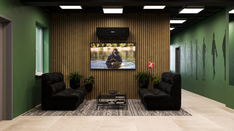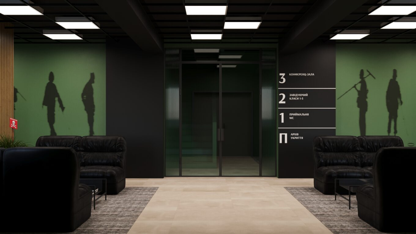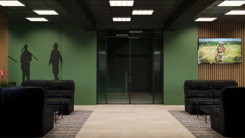 Концепція військового навчального центру, хол. Проєкт – Олексій Колеровий та команда KOLEROVIY Architecture & Design