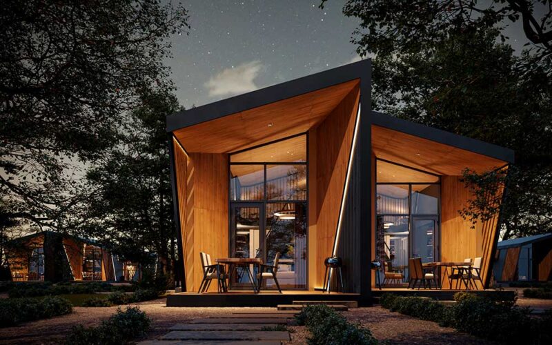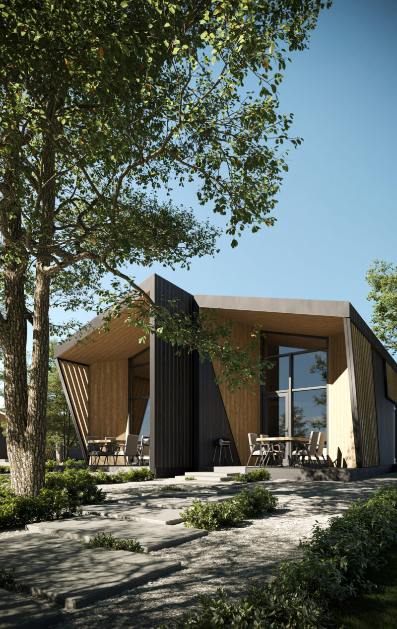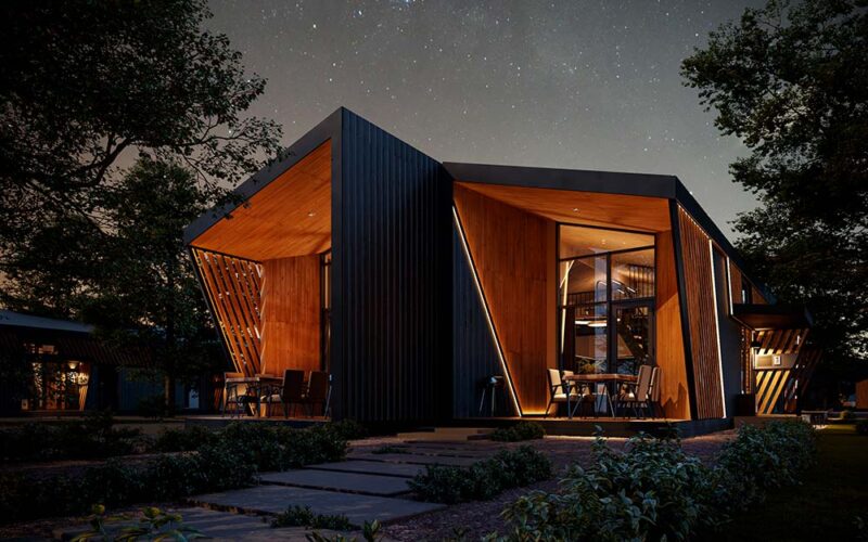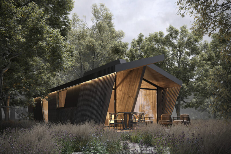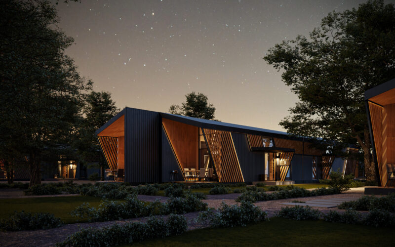 «Попередньо ідея була така, що адміністрація надає земельну ділянку в оренду на чотири роки, а ми розробляємо проєкт цього містечка й будуємо його на фондові кошти, — розповідає Олексій Колеровий. — Оскільки проєкт від початку значиться як тимчасовий, ми використовували технологію префабу — зробили 8 самодостатніх модульних будинків. Вони легкі, не потребують такого монолітного залізобетонного фундаменту, як у випадку, якби ми говорили про стандартні методи будівництва, натомість вони встановлюються на так звані геошурупи, що робить їх простими в монтажі, а отже — дуже мобільними. У випадку з проєктом на орендованій землі це ідеальне рішення.