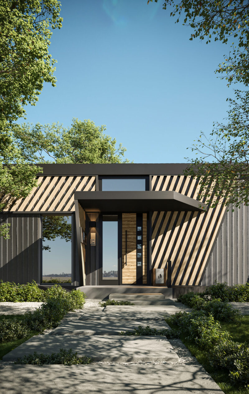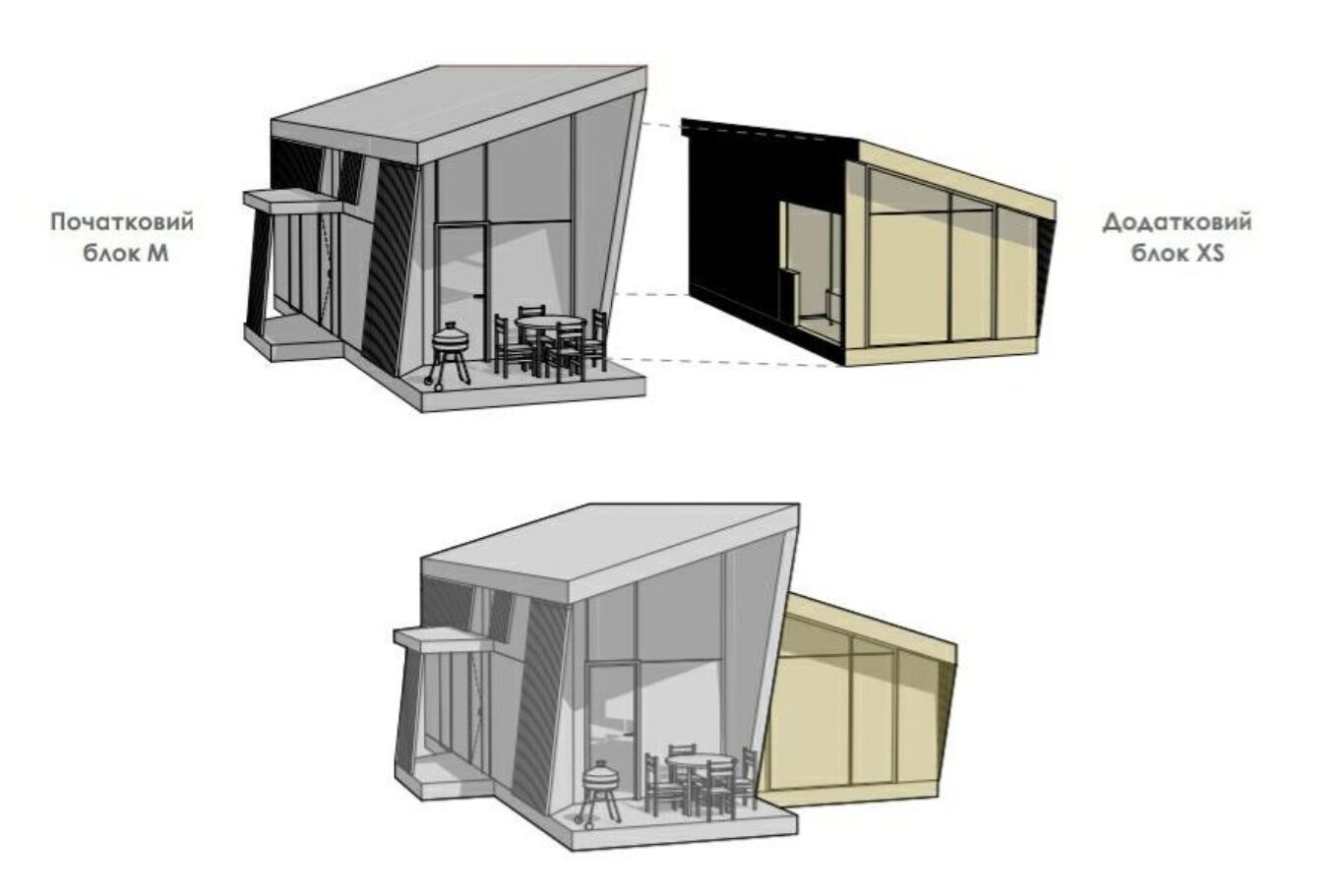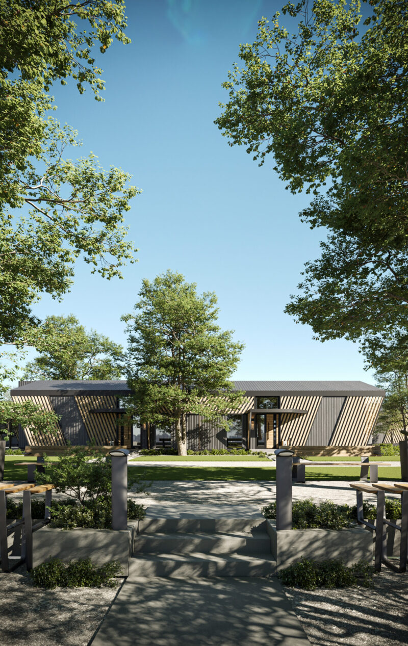 У чому цікавість цього проєкту — не можна було “відштампувати” вісім однакових будиночків, адже в кожному має жити чотири родини, а всі ж вони різні — відрізняється склад сім’ї, потреби, вік членів родини тощо. Тому ми розробили п’ять різних типів цих житлових блоків (1 блок — 1 родина), з яких можна було б компонувати будинки. На жаль, реалізувати проєкт так і не вийшло — через збій у підведенні комунікацій (а це вже був серпень 2022 року) робота зупинилася, і ми вже не встигали все побудувати й заселити людей до морозів, тож проєкт згорнули».
