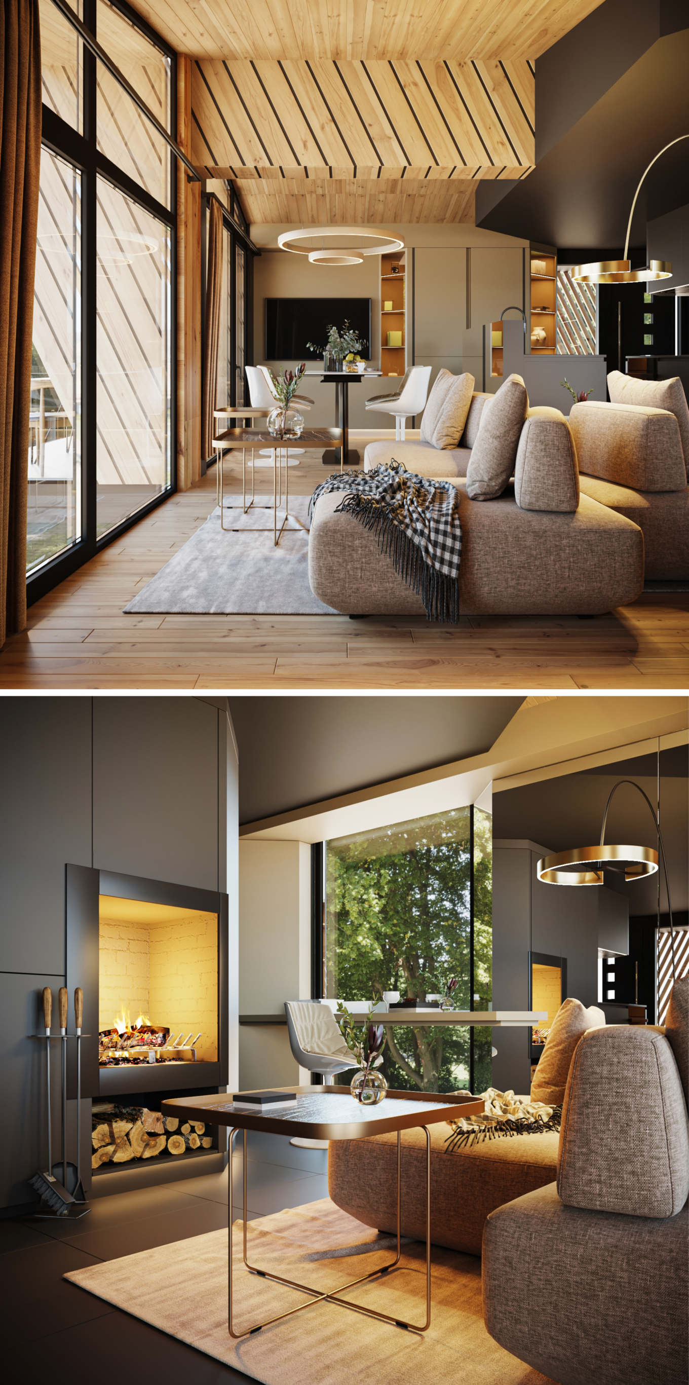 Інтер’єри котеджів у проєкті котеджного містечка для внутрішньо переміщених громадян, Ірпінь, Україна. Проєкт – KOLEROVIY Architecture & Design (не був реалізований)