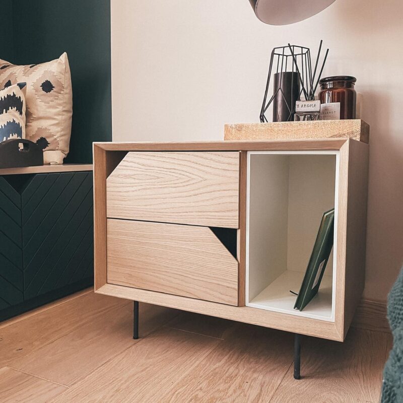 Дивовижно, наскільки цікаво може виглядати такий звичайний на перший погляд матеріал, як фанера, у предметному дизайні. До того ж фанера з ламінацією виявилася надзвичайно практичною: для моделей Origami у білому кольорі це забезпечує рівномірне покриття та легкий догляд, у чорному — абсолютно матова поверхня, на якій не лишається жодних відбитків пальців, а для варіанту у дереві використали класичний шпон дуба та його 3D-модифікацію з унікальним січенням у клітинку.