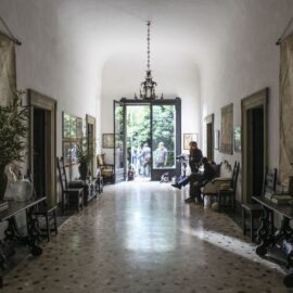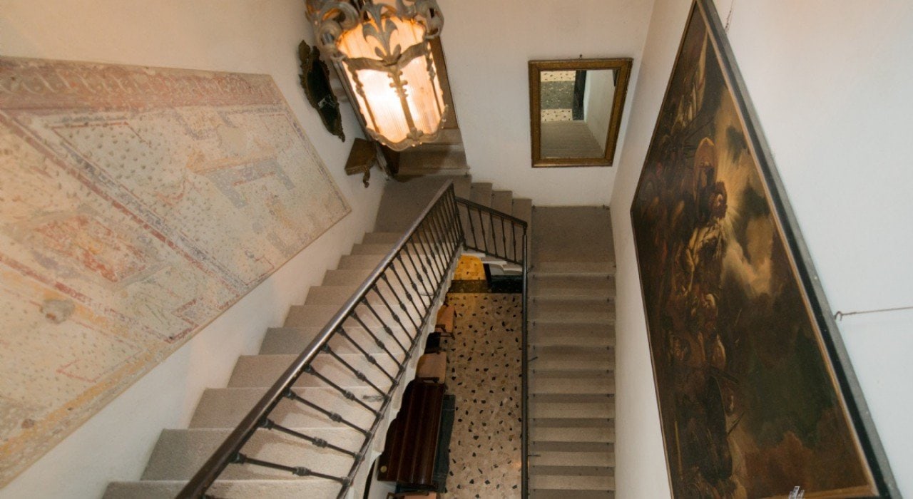 В спальнях под старинными кессонированными потолками хранится коллекция исторической мебели. Стены большинства транзитных пространств украшены типичными для XVI века гротесками. Гордость виллы – фреска «Дионис и Ариадна» Аурелио Буссо, одного из учеников Рафаэля, на потолке главного зала.
