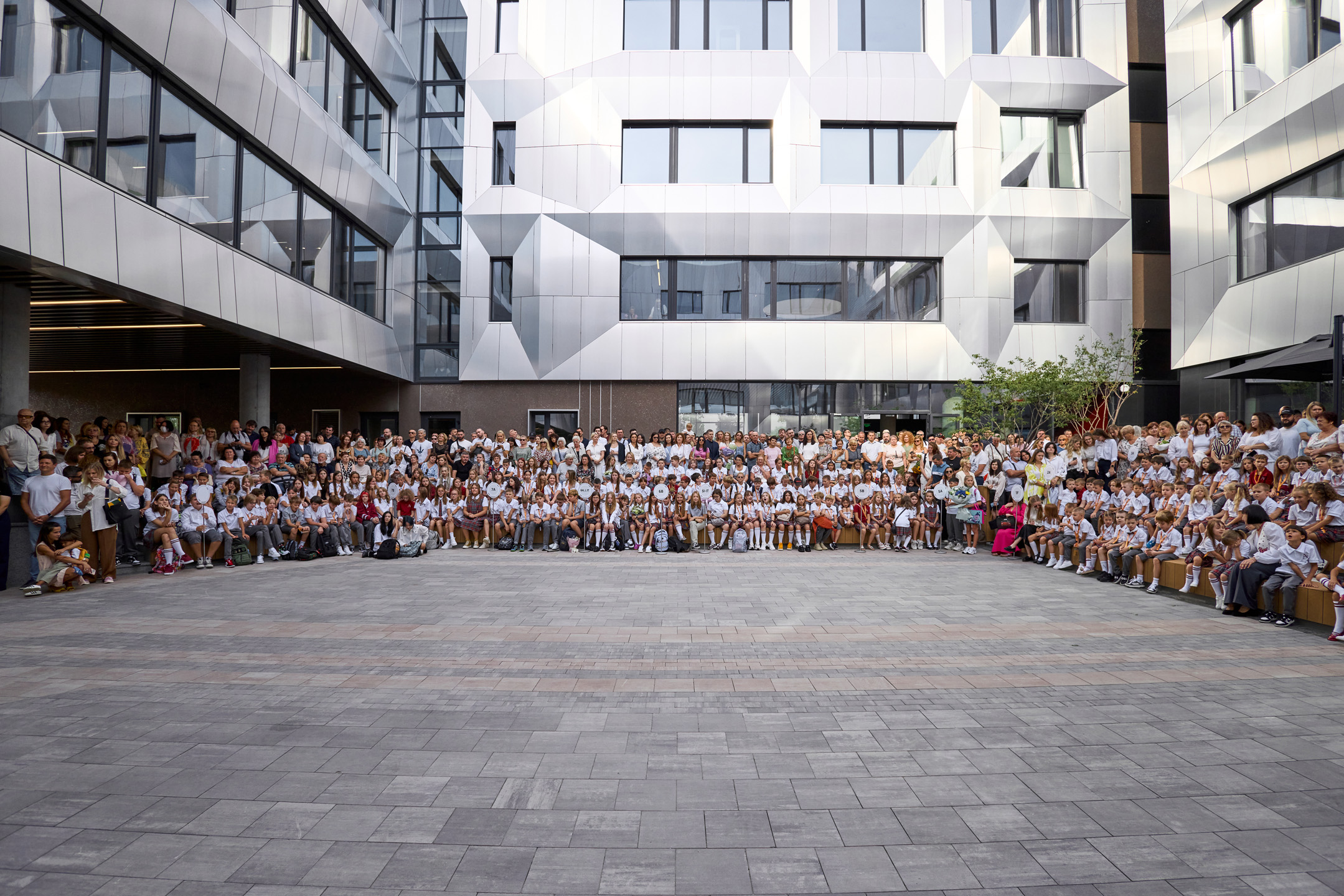 Церемонія відкриття пройшла 2 вересня у внутрішньому подвір’ї колегіуму, спроєктованому у вигляді амфітеатру. Захід відвідали учні, їхні батьки, а також усі, хто був причетний до створення навчального закладу: засновник компанії KAN Ігор Ніконов, засновниця освітньої мережі A+ Іванна Ніконова, генеральна директорка мережі A+ Тетяна Шаповалова та архітектор, CEO archimatika Дмитро Васильєв.