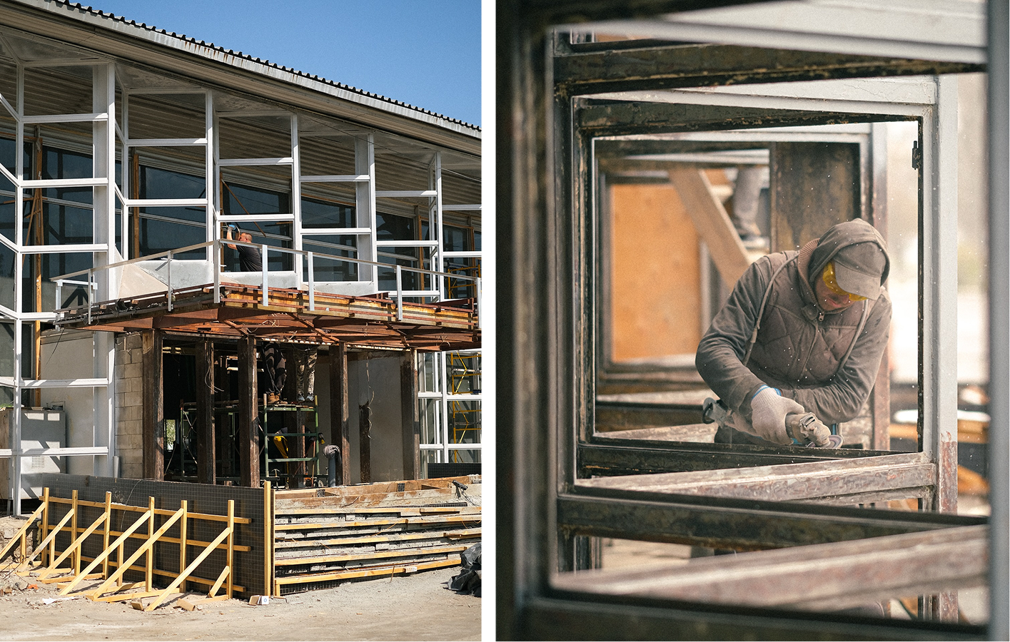 Ще одним кроком до автентичності стало відновлення фасадних віконних систем: їх відреставрували, а скло замінили на нове. Фасадні системи складаються з двох шарів: зовнішній вирішили тільки відреставрувати, а внутрішній замінили для покращення теплоізоляції.