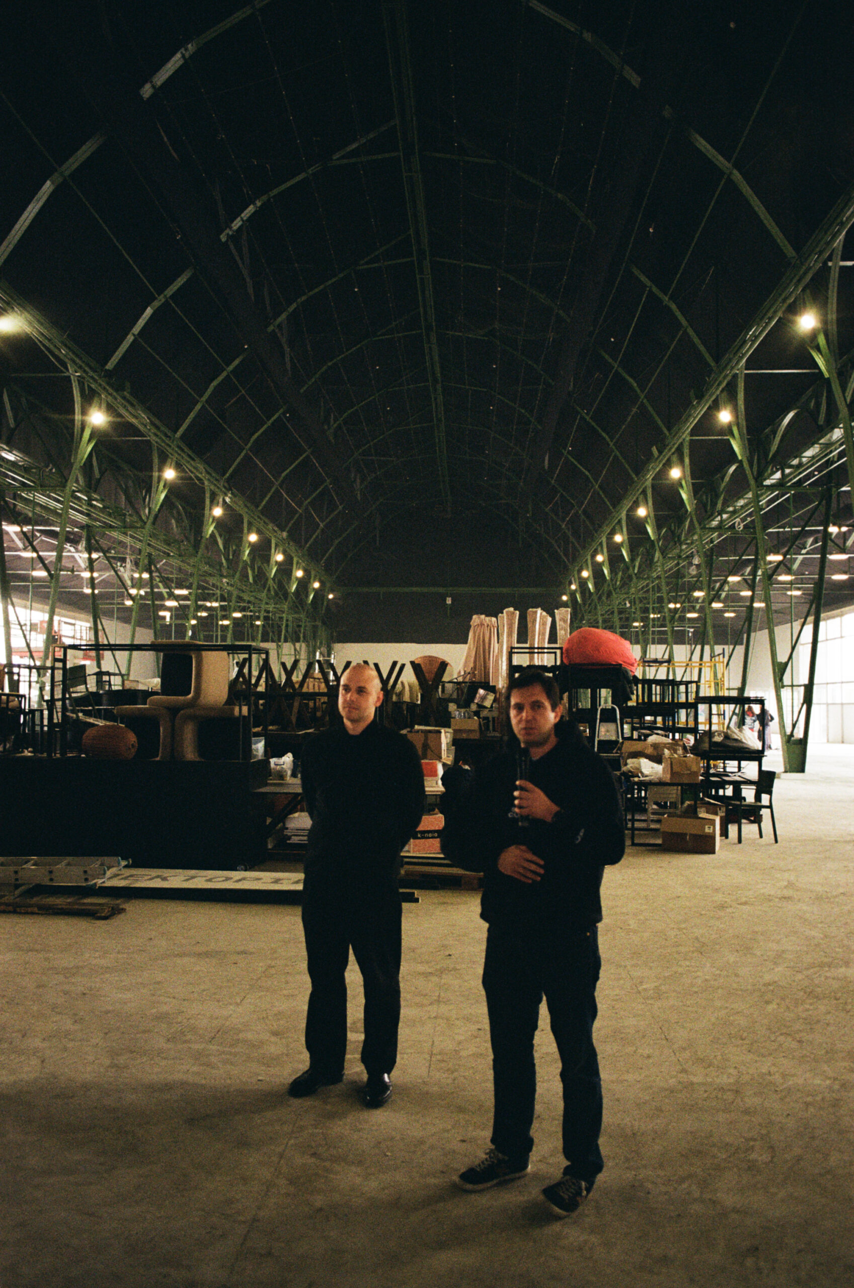 О. П.: Коли ми вперше потрапили в будівлю, зсередини вона була повністю зашита тканинами, гіпсокартоном, ми не бачили конструкцій, уся будівля була розбита на три окремих блоки, вони візуально відокремлювались перестінками. І це все накопичилось і перетворилось на якусь псевдоархітектуру. Тож ми почали з того, що повністю очистили цей простір. Коли все прибрали, то побачили, що, окрім металевих ферм, які підтримують дах, у павільйоні фактично більше нічого немає — чистий open space. Побачивши цей неймовірний простір, ці металеві ферми, ми дійшли до розуміння, що тут треба максимально залишати все таким, як було із самого початку. Якщо говорити про якийсь дизайн, то його тут практично немає.
