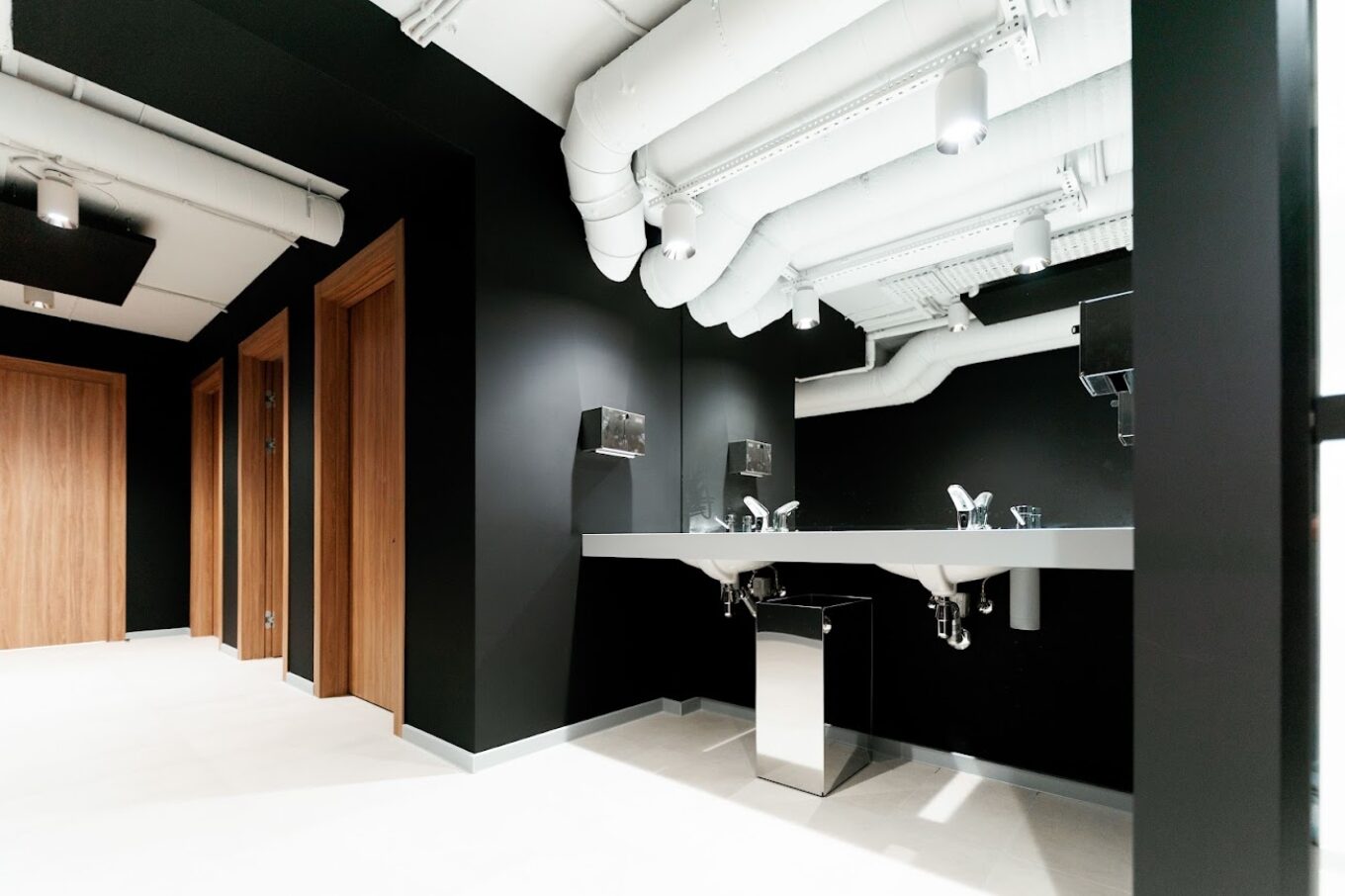 «Простір розташований у підвальному приміщенні, тому ми вирішили поєднати інженерні та безпекові рішення. В разі, якщо припиниться подача живлення, люди, що лишатимуться в укритті, матимуть не тільки свіже повітря, але й електроенергію та доступ до працюючих туалетів, адже в CLUST SPACE є насосна станція й запасна система електропостачання. Це місце також абсолютно безпечне, адже в його оформленні ми не використовували матеріалів, які можуть нашкодити людям при руйнуванні. Наприклад, скляні стіни кімнат для брифінгів броньовані плівкою, що утримає скляні осколки. Щодо інклюзивності, то на вході є кнопка виклику адміністратора, який допоможе маломобільним людям чи батькам із візочками зайти в приміщення», — розповів архітектор Павло Пекер, автор проєкту CLUST SPACE.