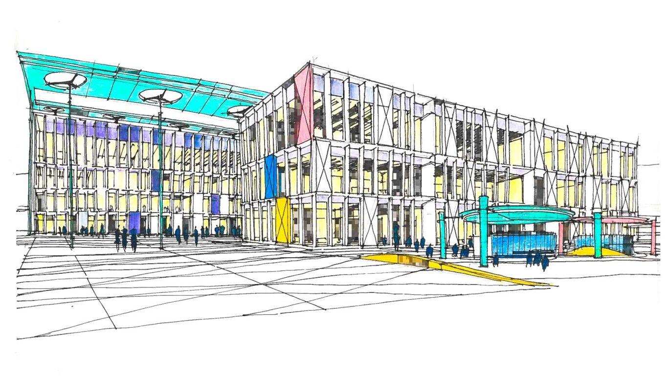 Принятый вариант проекта новой школы “А+”. По эскизам выше можно проследить всю его эволюцию. Источник изображения ©archimatika