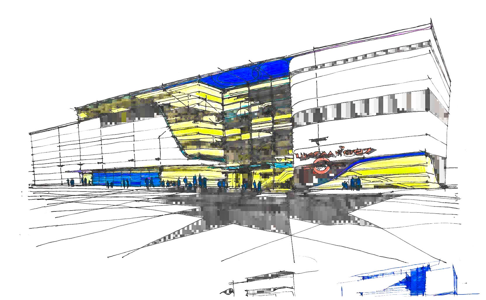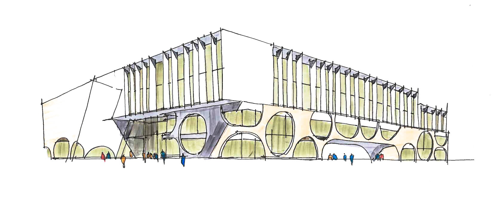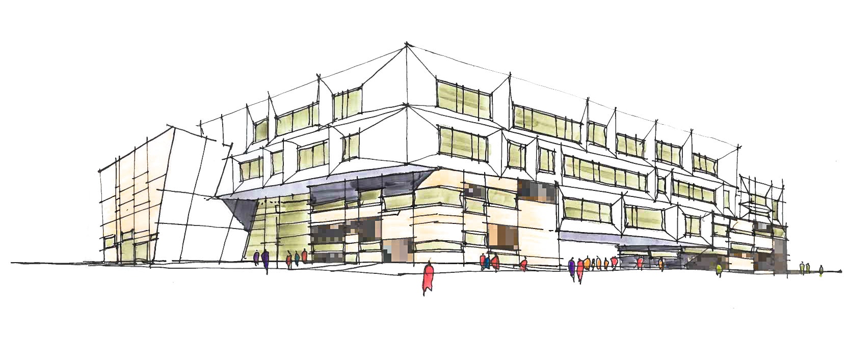 Принятый вариант проекта новой школы “А+”. По эскизам выше можно проследить всю его эволюцию. Источник изображения ©archimatika