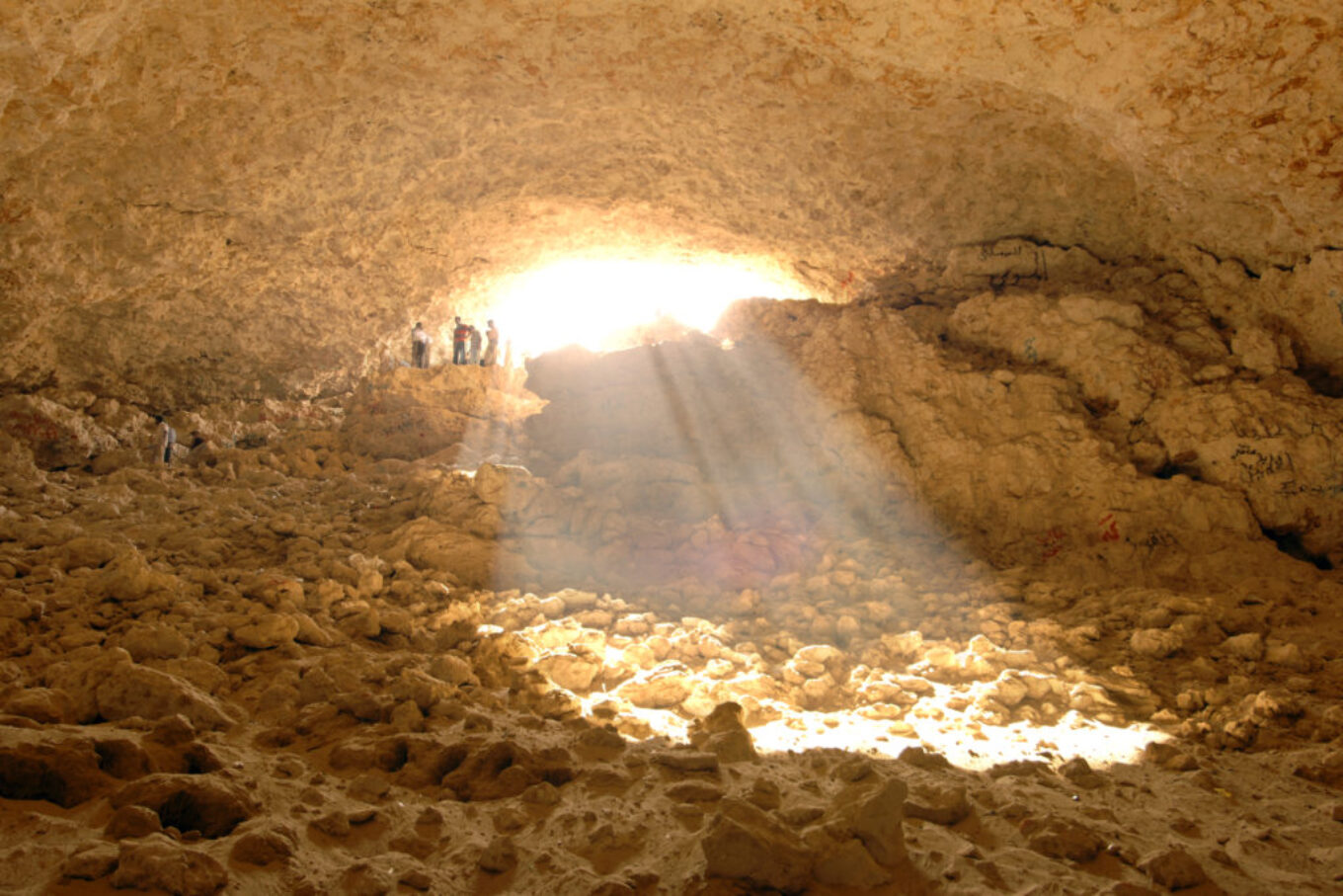 Пещера, глубиной более 40 метров, знаменита тем, что стены, состоящие из гипсовых отложений, в том числе и кристаллов «Розы Пустыни» – флюоресцируют в темноте, а днем потоки света, проникающие сверху, создают на сводах сложную игру теней и света.