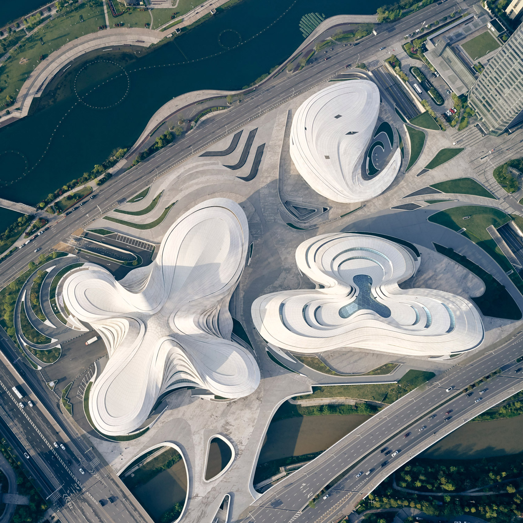 Строительство комплекса общей площадью 115 тысяч квадратных метров, началось еще при жизни легендарной Захи. В 2011 году студия одержала победу в международном конкурсе на создание генерального плана участка. Деконструктивистский биоморфный дизайн, многослойные, плавно изогнутые фасады с ленточным остеклением и сложная конфигурация внутренних площадей – все эти авторские штрихи, присущие Хадид, делают здания культурного комплекса безусловно узнаваемыми.