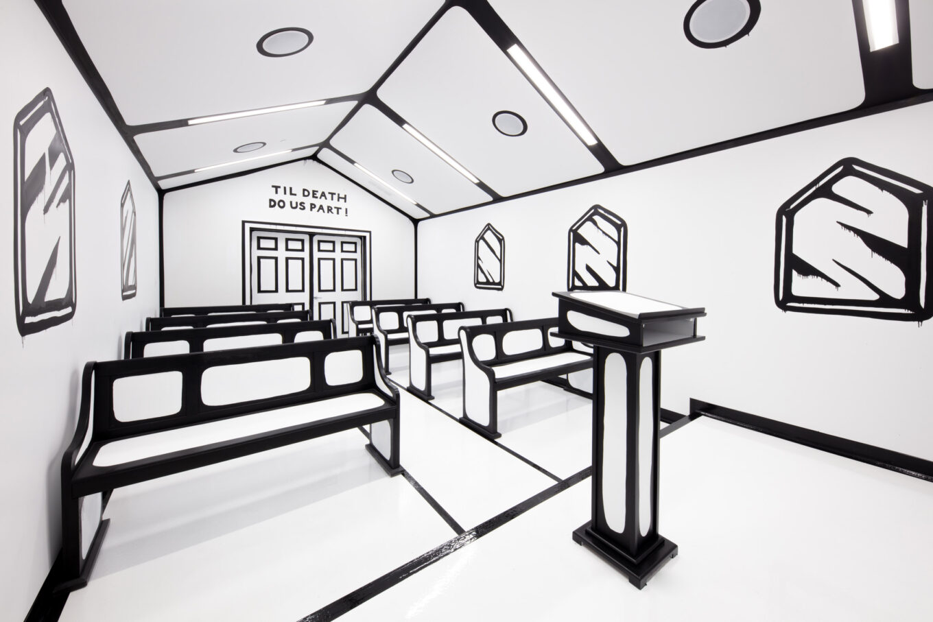 По задумке Видеса, часовня, названная Til Death Do Us Part («Пока смерть не разлучит нас»), должна стать идеальным фоном для свадебных фотографий, достойных Instagram. За основу проекта была взята одна из самых знаковых достопримечательностей Лас-Вегаса – Маленькая белая свадебная часовня (A Little White Wedding Chapel), предлагающая услугу заключения «быстрых браков».