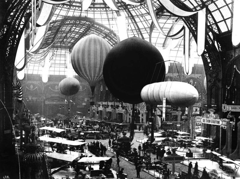 В 1909 году в Большом Дворце состоялось международное Аэрошоу. Впечатляющие фотоснимки с этого события позволяют оценить масштабы нефа – там поместились не только аэропланы, но и дирижабли и даже воздушные шары. Кстати, именно тогда, по свидетельствам хранителей Гран-Пале, конструкции был нанесен ущерб – участники выставки перегрузили металлические фермы, поддерживающие купол, привязывая к ним различные экспонаты.