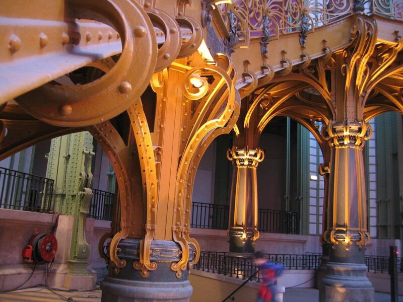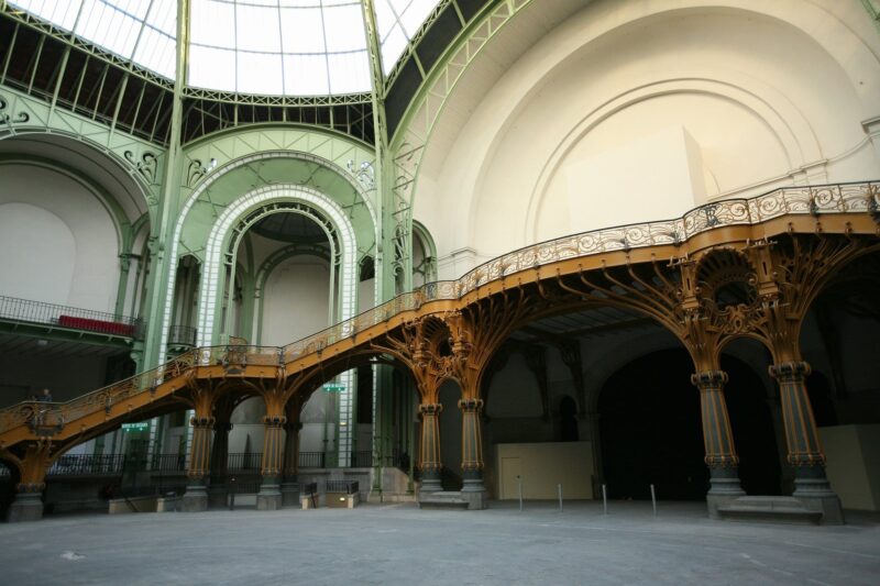 Общая площадь Гран-Пале составляет 72 тысячи квадратных метров, его неф (центральное выставочное пространство) увенчан самым большим стеклянным куполом в Европе. При сооружении ажурной металлической конструкции, поддерживающей купол, было использовано 6 тысяч тонн стали – это больше, чем ушло на постройку башни Эйфеля.