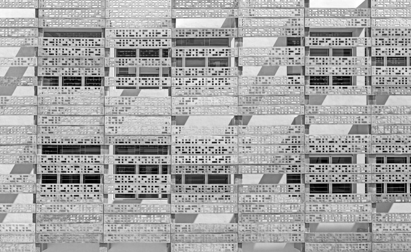 Автор: B. R. S. Sreenag. Категория: «Экстерьер». Кампус школы и университета Vidya Mandir был открыт в 2009 г. Архитектурный проект, напоминающий работы Ле Корбюзье в Индии, был разработан местным бюро KSM Architecture. Бетонные перфорированные панели защищают внутренние пространства от палящего солнца.