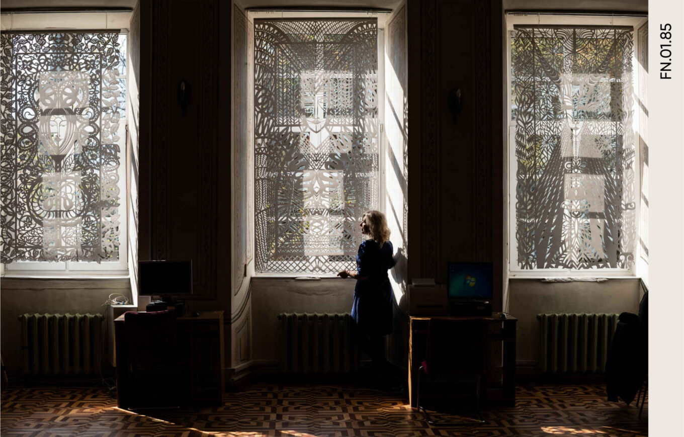 Львівська майстриня Дарія Альошкіна створює монументальні декоративні витвори для сучасних інтер’єрів. Її роботи стали популярними далеко за межами рідної країни й підкорили Німеччину, Польщу, Францію та Південну Корею. Вдома дві витинанки-фіранки мисткині прикрашають міську раду у Львові. А цьогоріч її роботи стали частиною експозиції «Українська ДНК» на Венеційській бієнале, де архітектори та дизайнери зі всього світу могли ознайомитися із частиною української ідентичності.