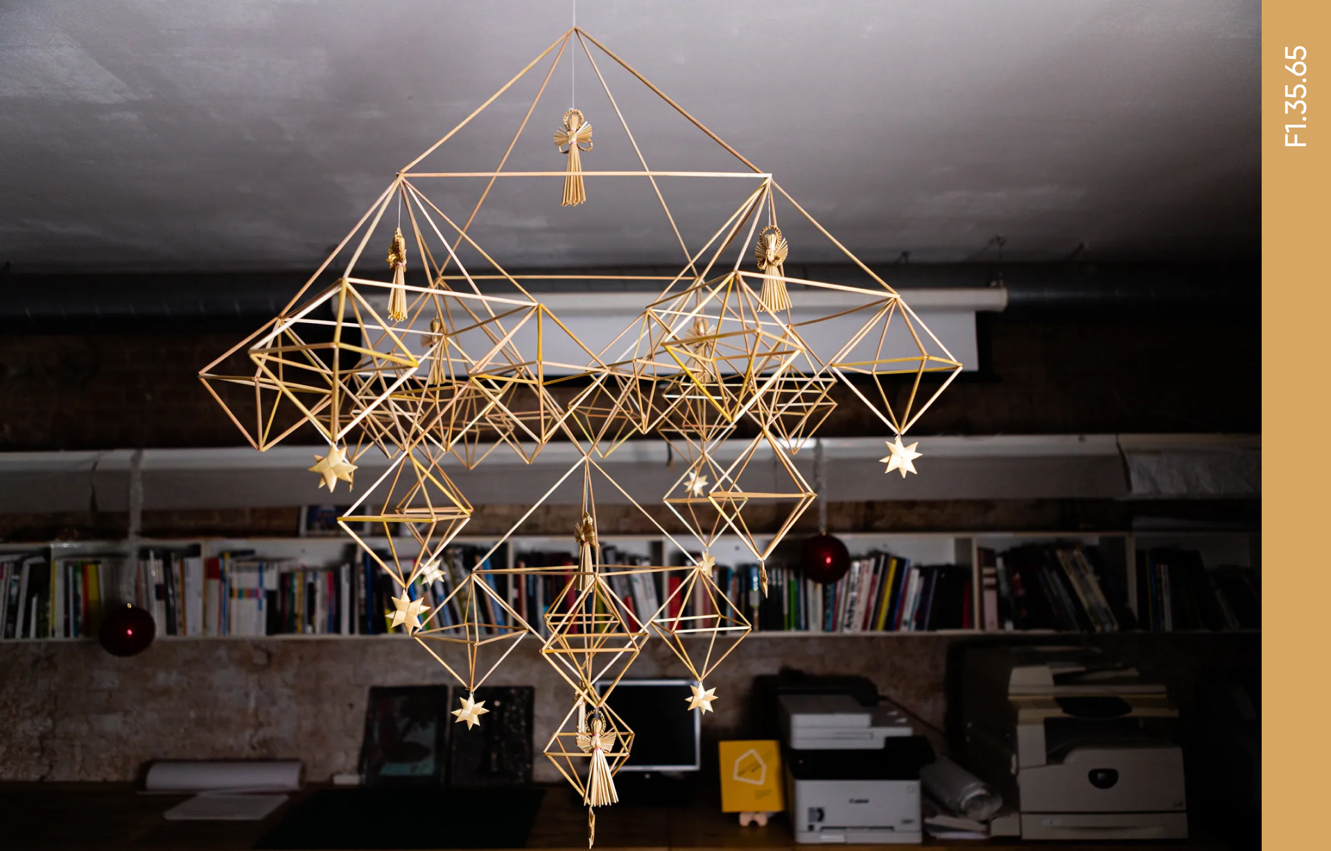 Серед інших традиційних прикрас були вироби із соломи — «павуки». Їх вважали оберегом від нечистої сили та символом Всесвіту. «Павуків» плели власноруч: спершу із соломинок складали ромби, а потім сполучали між собою в піраміди. Ці об’ємні конструкції підвішували до центрального сволока (головної балки в домі) на довгій волосині з конячого хвоста. Коли хтось заходив у дім і утворювався протяг, «павук» повертався в різні боки та нагадував живу істоту. Є припущення, що саме в такому вигляді наші предки уявляли собі модель світу. Прикрасу або спалювали одразу після свят, або вона висіла в домі впродовж року, поки не сплетуть нову. Гра світла, яке відбивається від складної геометричної фігури, підказує нам, що подібну форму можна використовувати в повсякденні для світильників і ламп.