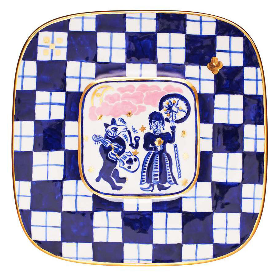 Дизайнерський бренд GUNYA випустив колекцію напівпорцелянового посуду із цікавими святковими елементами. Так, на одній із тарілок зображена коляда. «Центральне зображення створене за мотивами писаних кахлів Олекси Бахматюка 1849 року та архівного фото колядників з Донеччини 1905 року. Коляда — давній звичай зимових святкувань, обходи з виконанням обрядових пісень та віршів. Сюжет доповнений геометричним орнаментом», — ідеться в описі виробу.