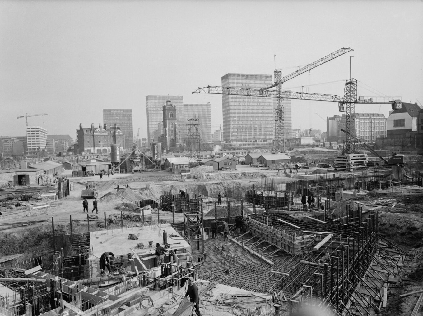 Найбільш яскравим зразком комплексної повоєнної забудови Лондона вважається Барбікан, архітектурний ансамбль бруталістських будівель — офісних, культурних, житлових, — зведений на місці знищеного за одну ніч району між Мургейтом і Олдерсгейтом. Будівництво Барбікана тривало майже 30 років — із 1960 по 1980-ті роки. Майстер-план і концептуальний дизайн розробляли Джеффрі Пауелл, Крістоф Бон, Пітер «Джо» Чемберлін з архітектурного бюро CP&B, які раніше спроєктували муніципальний житловий комплекс Golden Lane Estate.