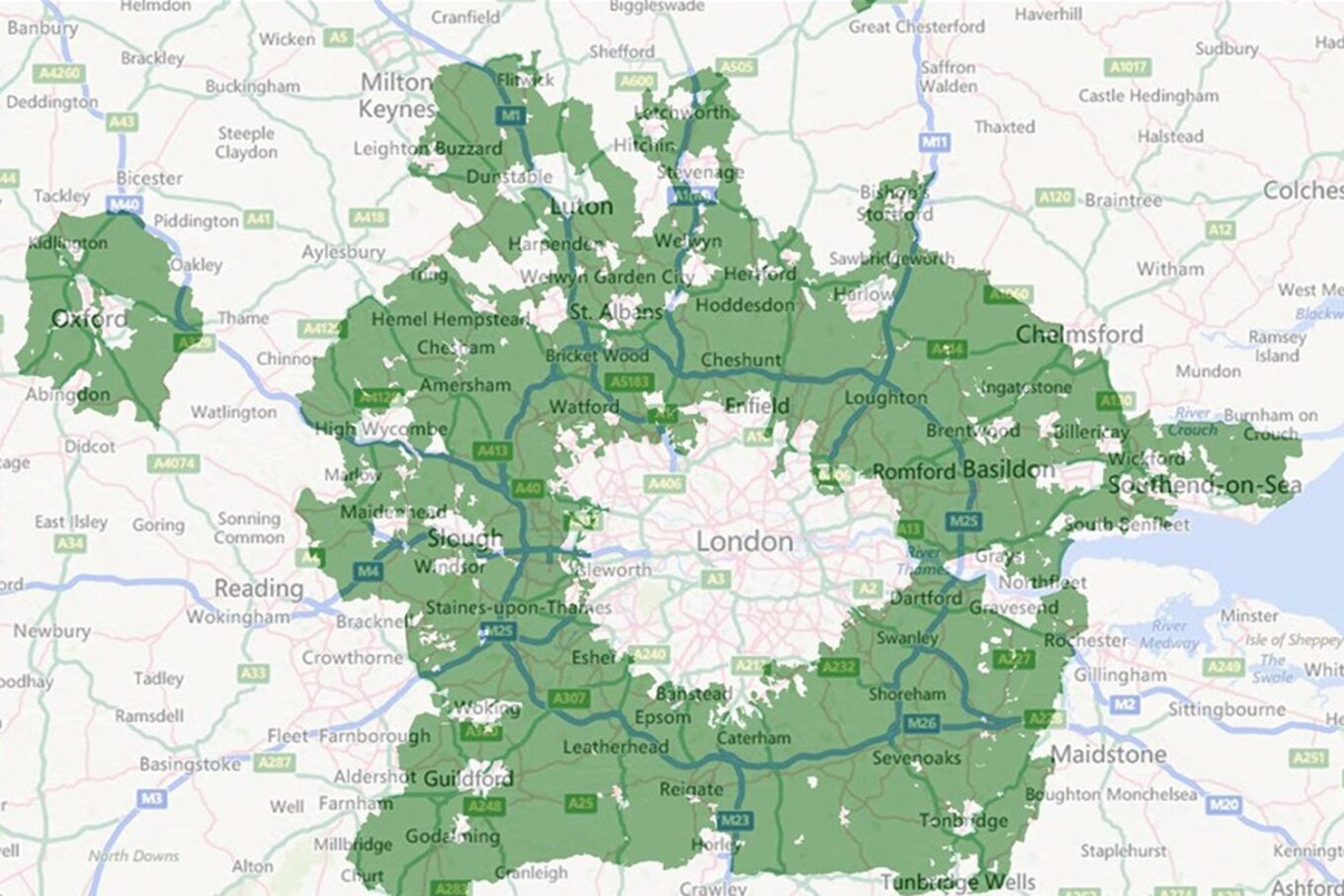 Зростання попиту на нове житло призводить до появи компромісних планів, як-от, наприклад, план London Stansted Cambridge Corridor, що передбачає створення інноваційних технопарків уздовж транспортного коридору від Лондона до Кембриджа. При цьому нове будівництво велося б уже на землях Зеленого поясу, що охороняються.