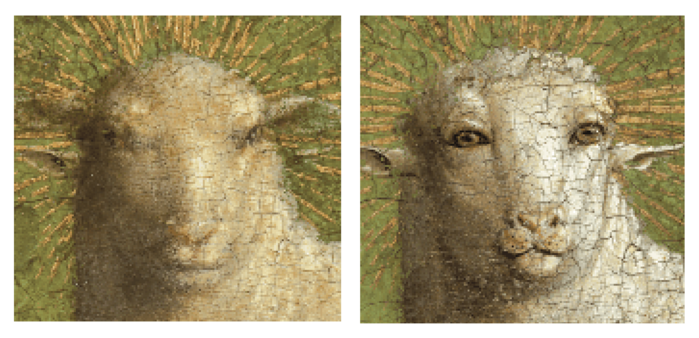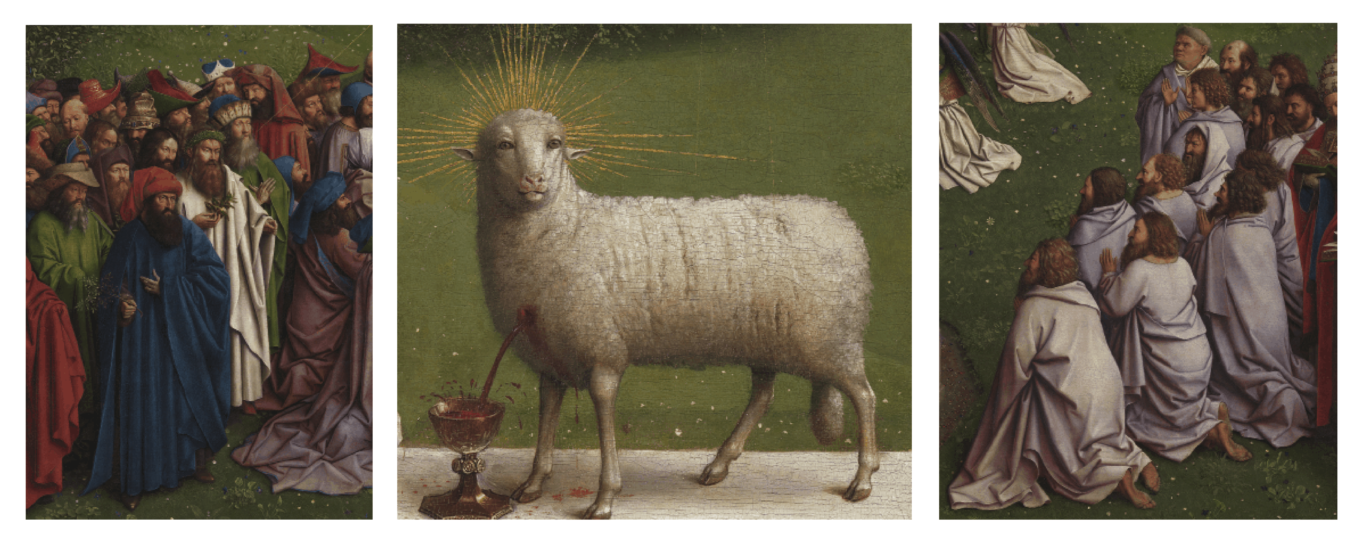 Як з’ясувалося, ван Ейк трактував його лик подібно до людського — в ньому прочитується розуміння та прийняття своєї жертвенної долі. Художник, що переписав лик Агнця, надав йому характерних рис тварини. Магія зникла, і гуманістичний посил ван Ейка був забутий на довгих 5 століть.
