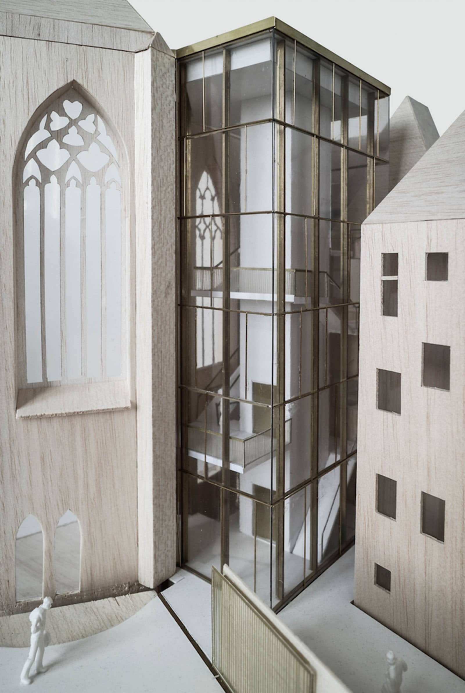 Про те, щоб зводити підйомники чи пандуси всередині середньовічного собору, не йшлося. Було вирішено звести зовнішню структуру Центру для відвідувачів, яка завдяки ліфту і сходам дозволить усім бажаючим побачити вівтар.