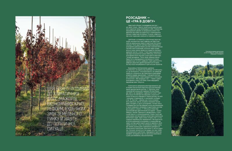 Поки що нам не зрівнятися з європейськими розсадниками, і конкурувати вкрай важко. Ми — на початку довгої історії, але швидко ростемо, з кожним роком відточуємо досвід, теорію, практику. І постійно поповнюємо свою колекцію: обираємо за кордоном найякісніші рослини, зокрема молодняк, який доведеться «виховувати» не менше 10–15 років.