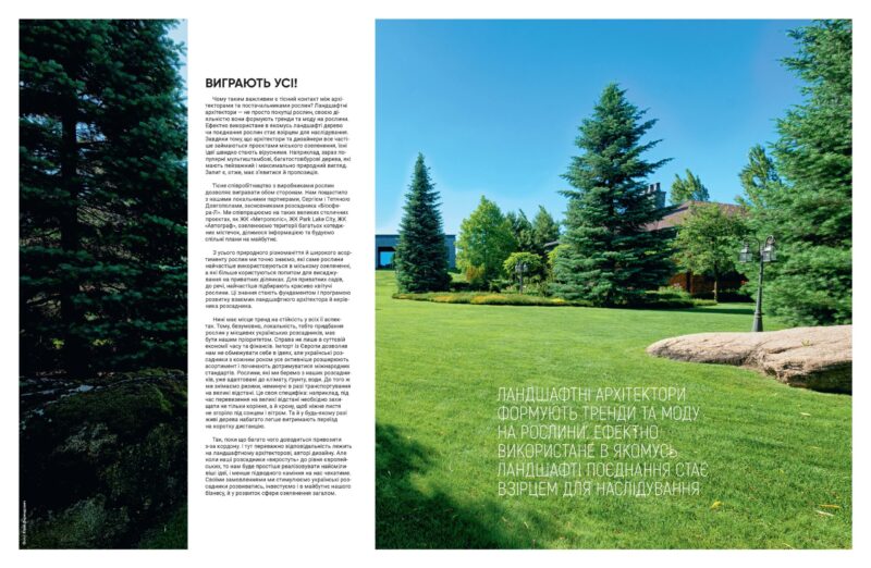 Так, поки що багато чого доводиться привозити з-за кордону. І тут переважно відповідальність лежить на ландшафтному архітекторові, авторі дизайну. Але коли наші розсадники «виростуть» до рівня європейських, то нам буде простіше реалізовувати найсміливіші ідеї, і менше підводного каміння на нас чекатиме. Своїми замовленнями ми стимулюємо українські розсадники розвиватись, інвестуємо і в майбутнє нашого бізнесу, й у розвиток сфери озеленення загалом.
