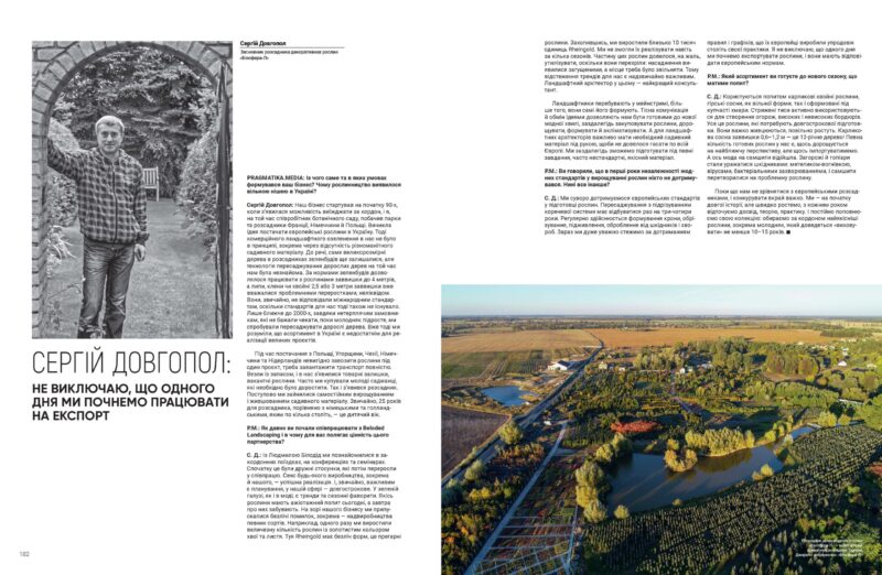 Сергій Довгопол: Наш бізнес стартував на початку 90‑х, коли з’явилася можливість виїжджати за кордон, і я, на той час співробітник ботанічного саду, побачив парки та розсадники Франції, Німеччини й Польщі. Виникла ідея постачати європейські рослини в Україну. Тоді комерційного ландшафтного озеленення в нас не було в принципі, зокрема через відсутність різноманітного садивного матеріалу.