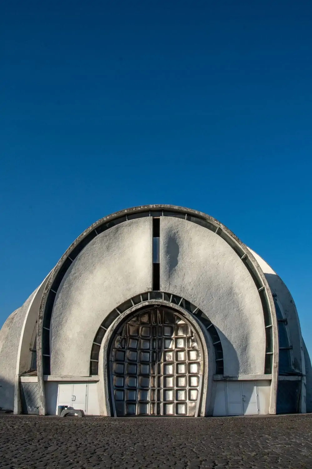 Київський крематорій є однією з найчастіше згадуваних будівель у контексті архітектури київського модернізму. На фото — зал прощання Київського крематорію, збудований за проєктом Авраама Мілецького, Ади Рибачук та Володимира Мельниченка. Фото: Юрій Ферендович