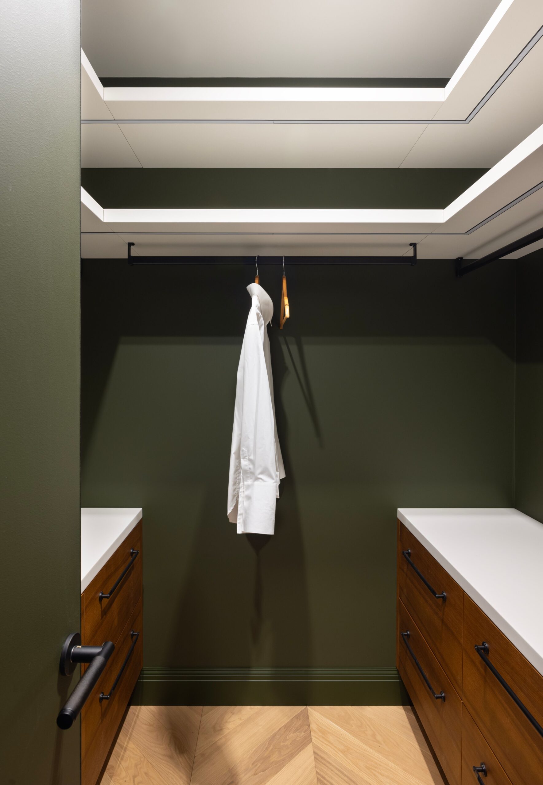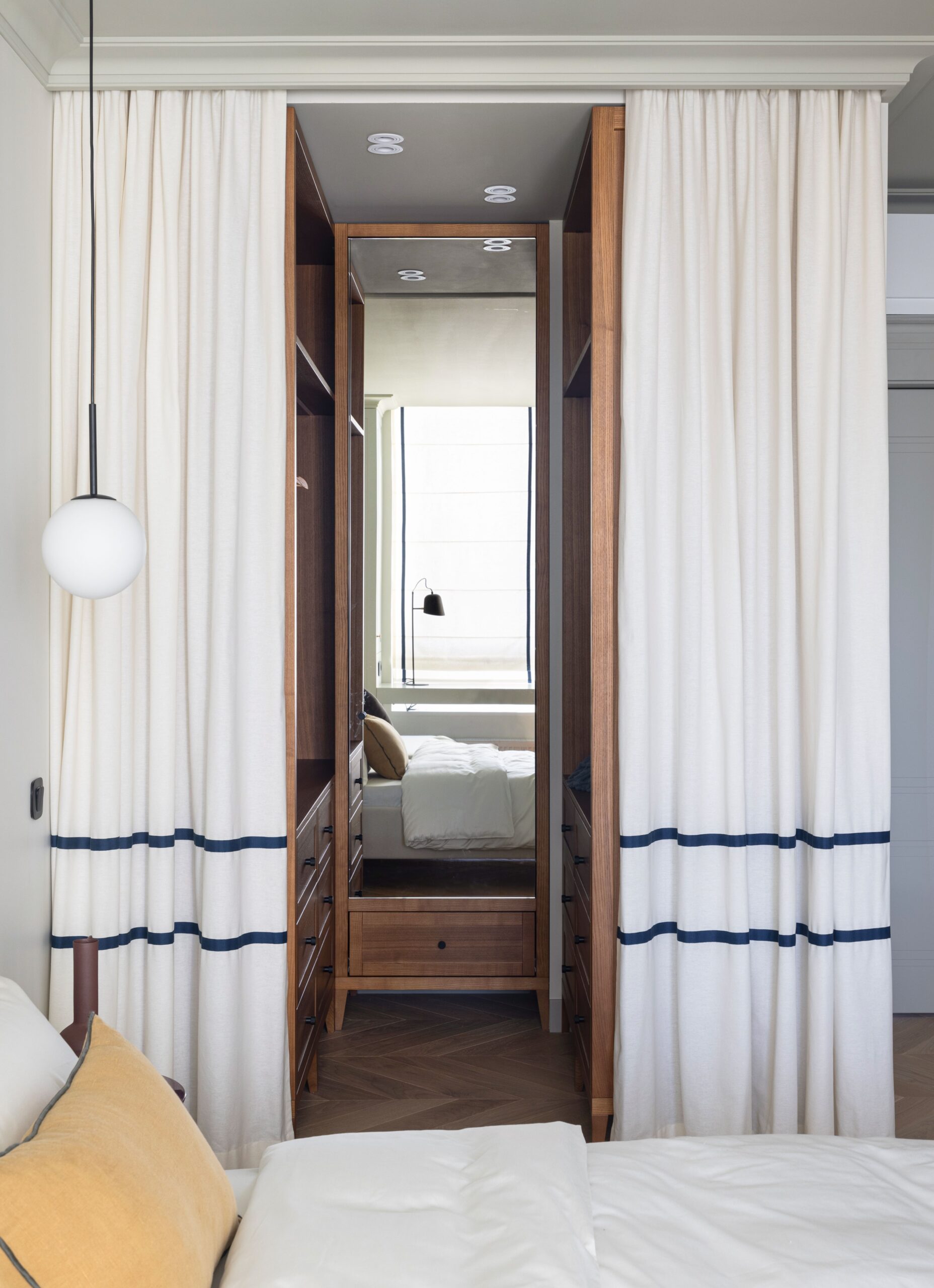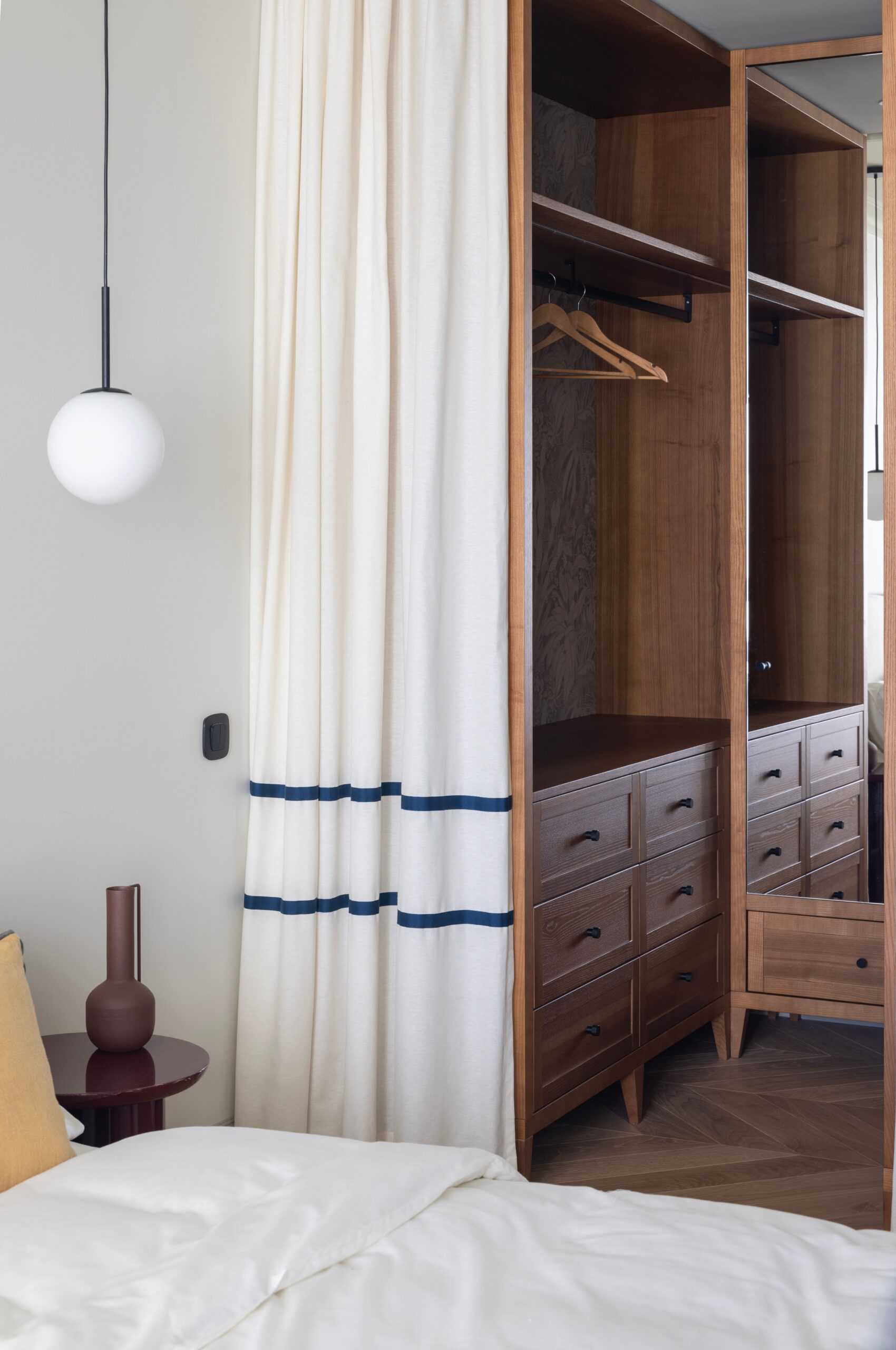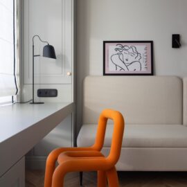 «Незадовго до початку роботи над проєктом я побувала в Сіетлі, США, – розповідає дизайнерка Ольга Русакова. – Звернула увагу, що там часто виділяють батьківську зону в окремий, більш приватний простір. Моїм клієнтам сподобався цей підхід, тому між їхньою спальнею та рештою квартири з’явився прохідний кабінет».