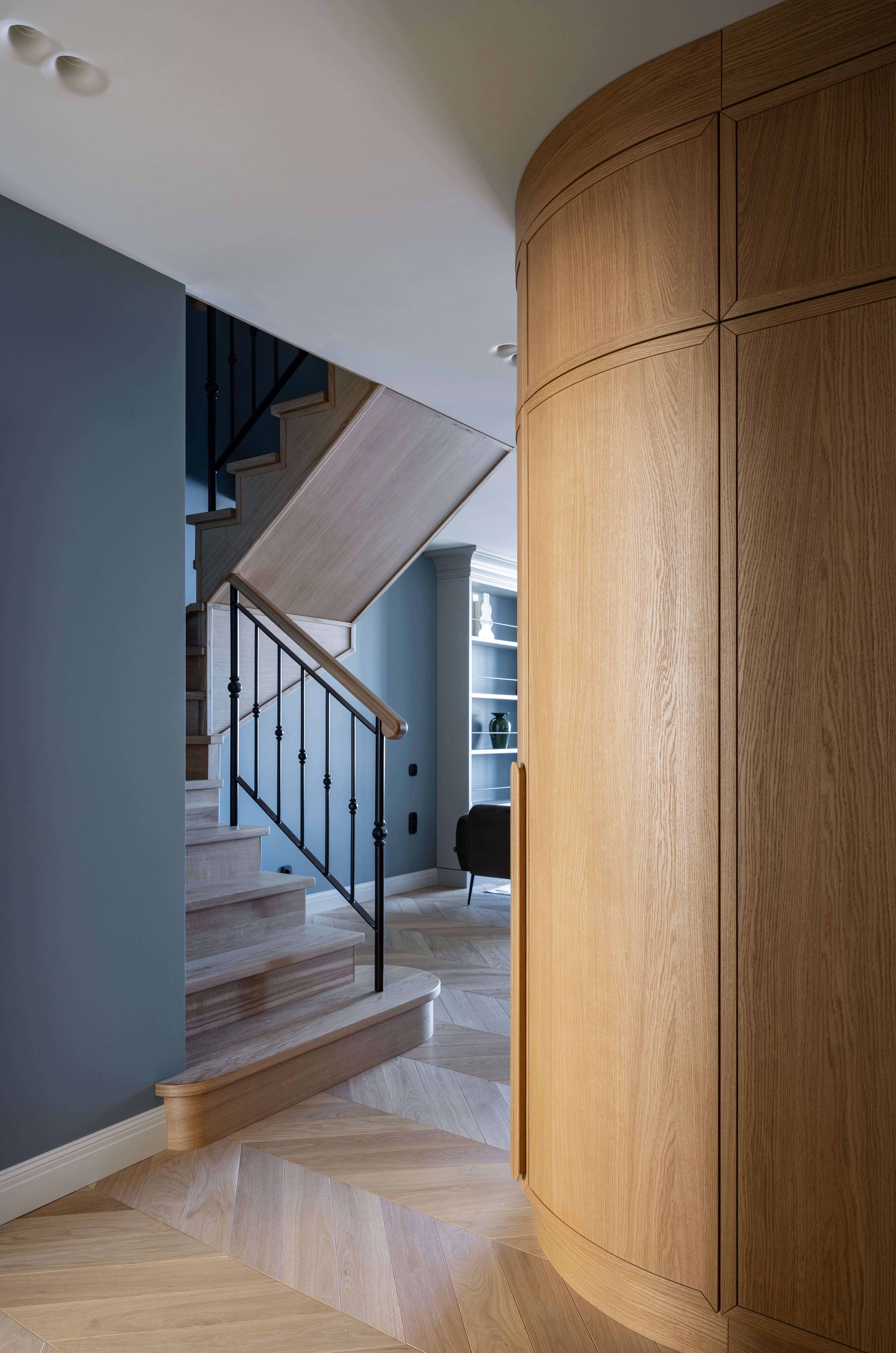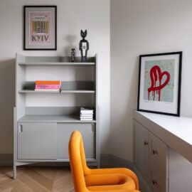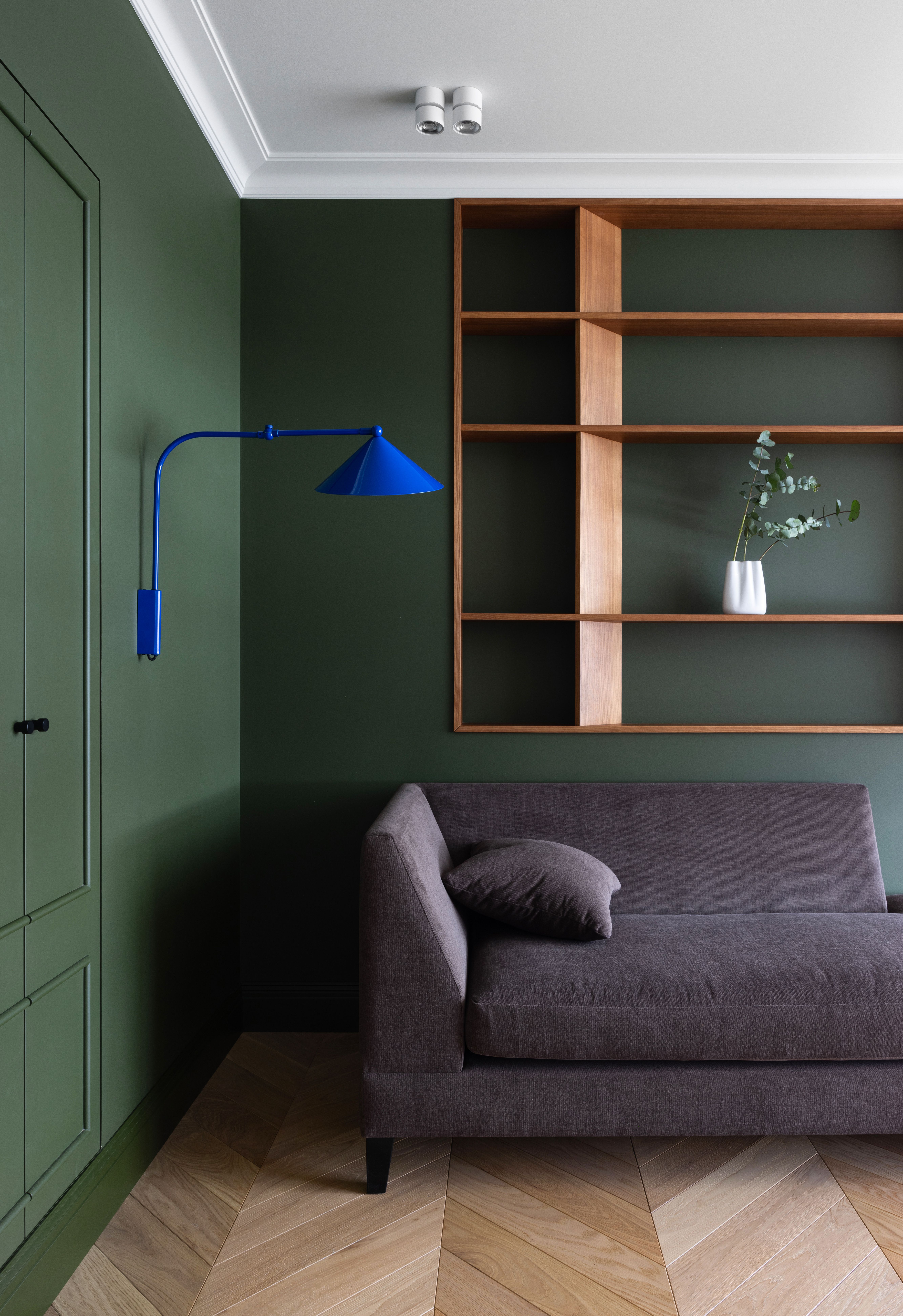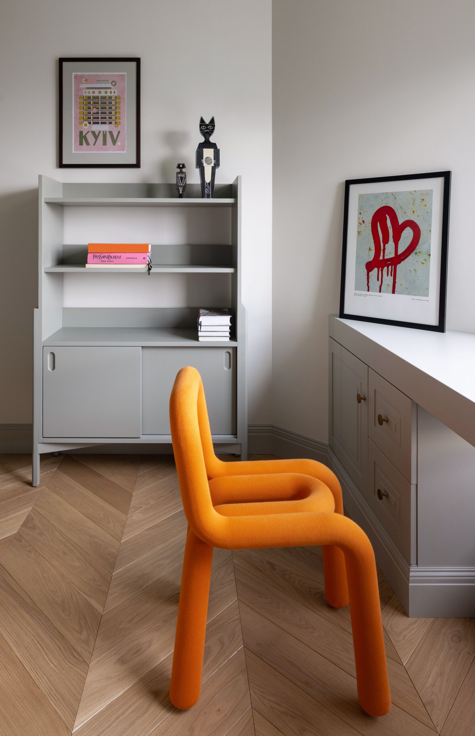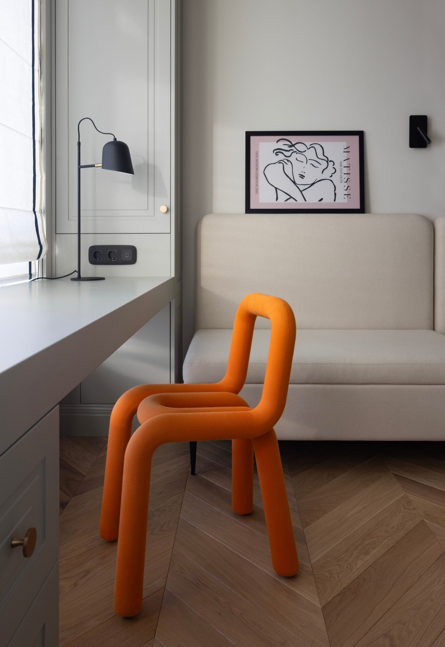 «Незадовго до початку роботи над проєктом я побувала в Сіетлі, США, – розповідає дизайнерка Ольга Русакова. – Звернула увагу, що там часто виділяють батьківську зону в окремий, більш приватний простір. Моїм клієнтам сподобався цей підхід, тому між їхньою спальнею та рештою квартири з’явився прохідний кабінет».