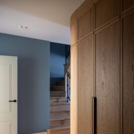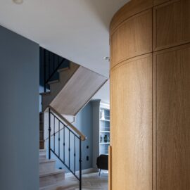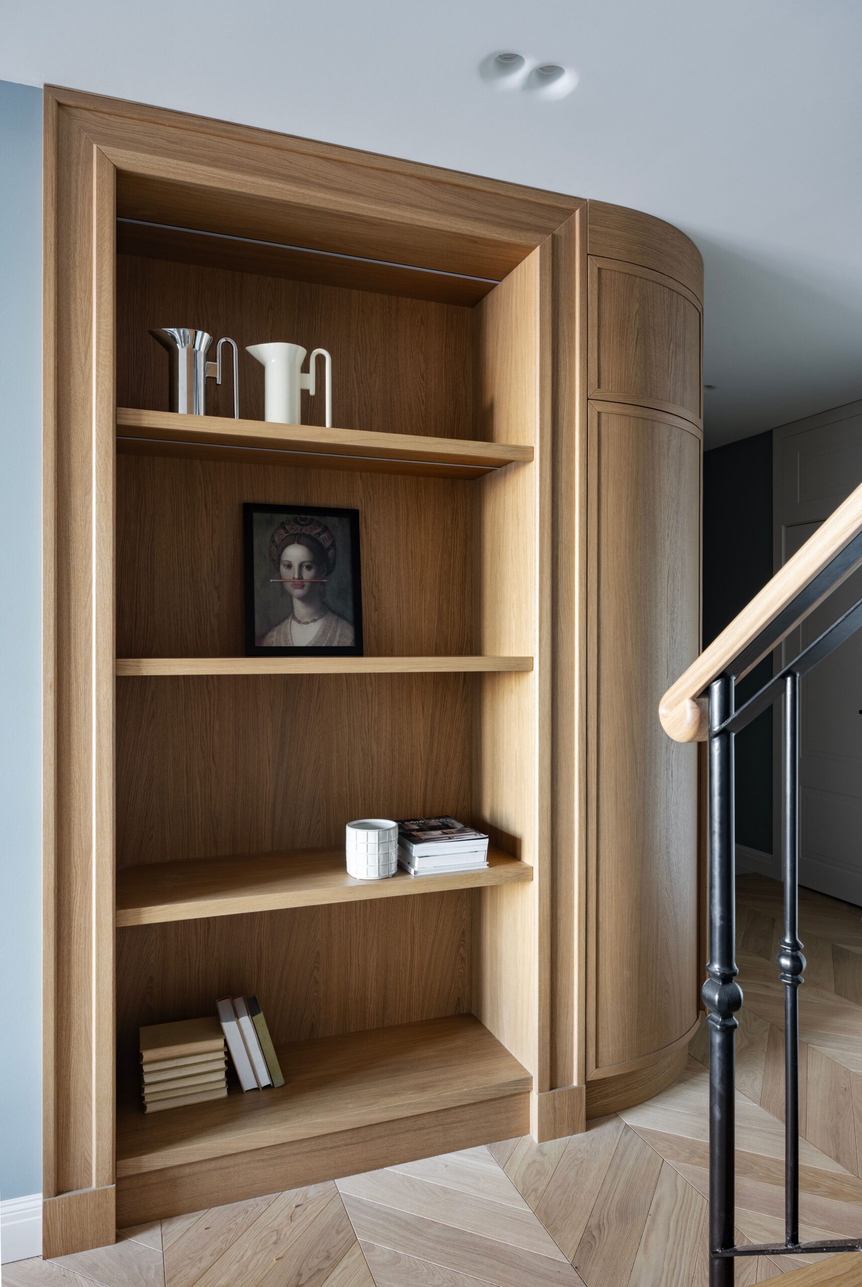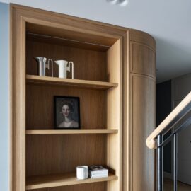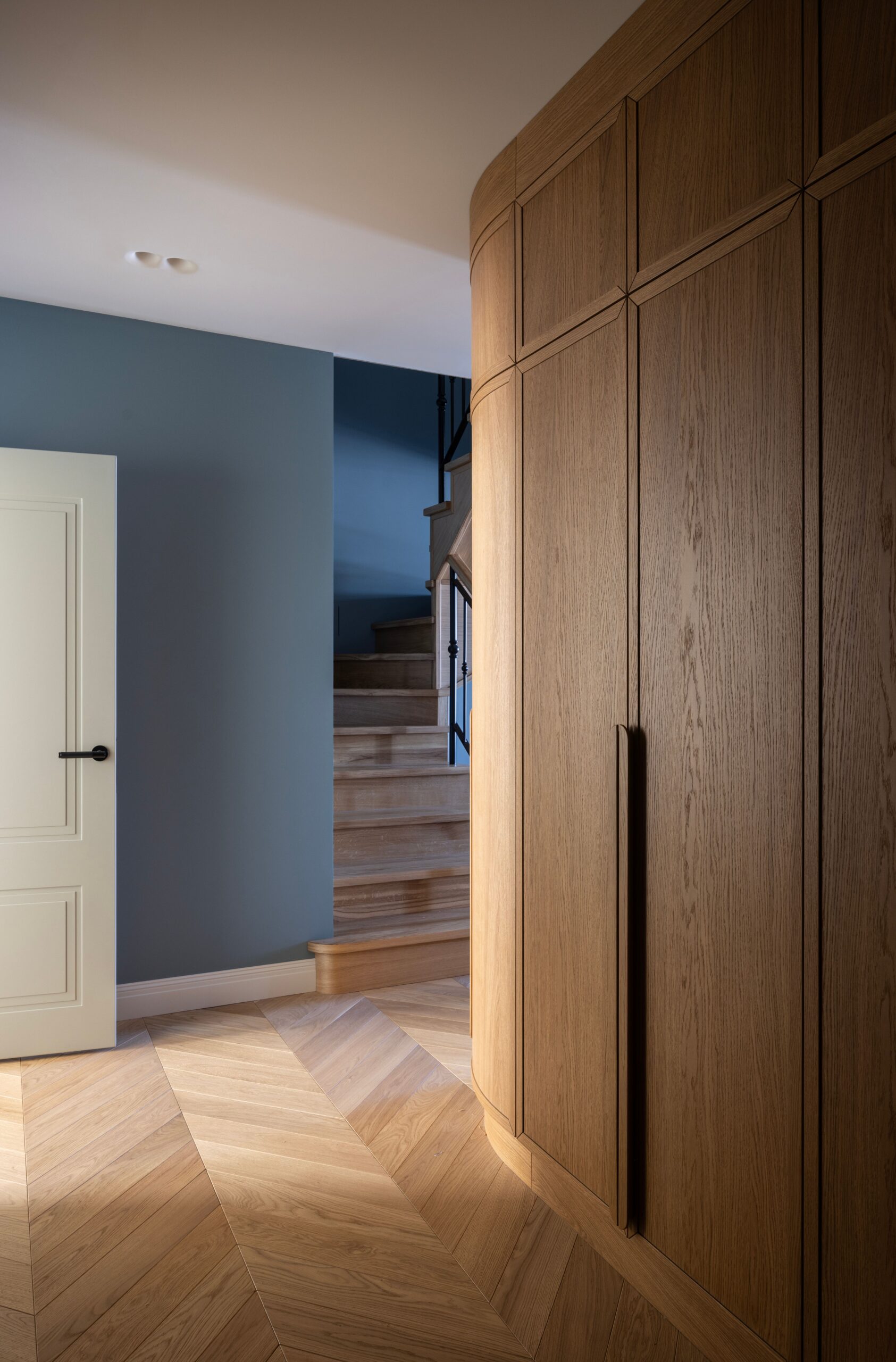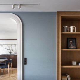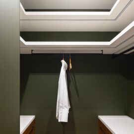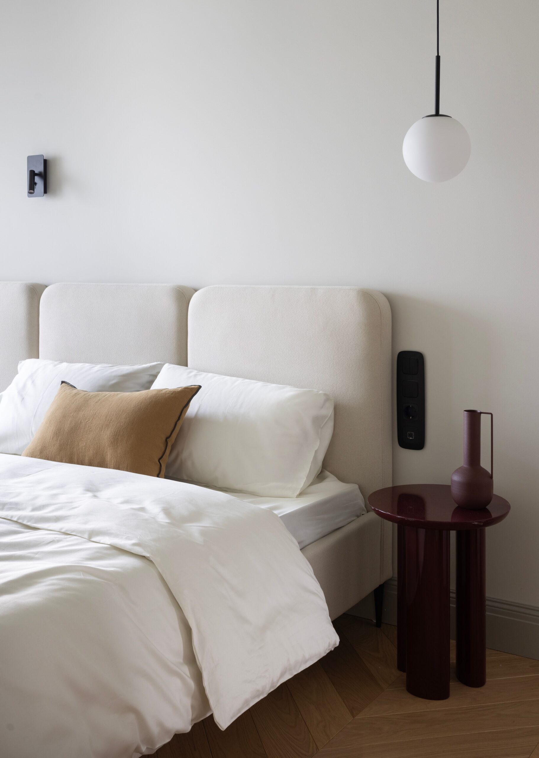 «Незадовго до початку роботи над проєктом я побувала в Сіетлі, США, – розповідає дизайнерка Ольга Русакова. – Звернула увагу, що там часто виділяють батьківську зону в окремий, більш приватний простір. Моїм клієнтам сподобався цей підхід, тому між їхньою спальнею та рештою квартири з’явився прохідний кабінет».