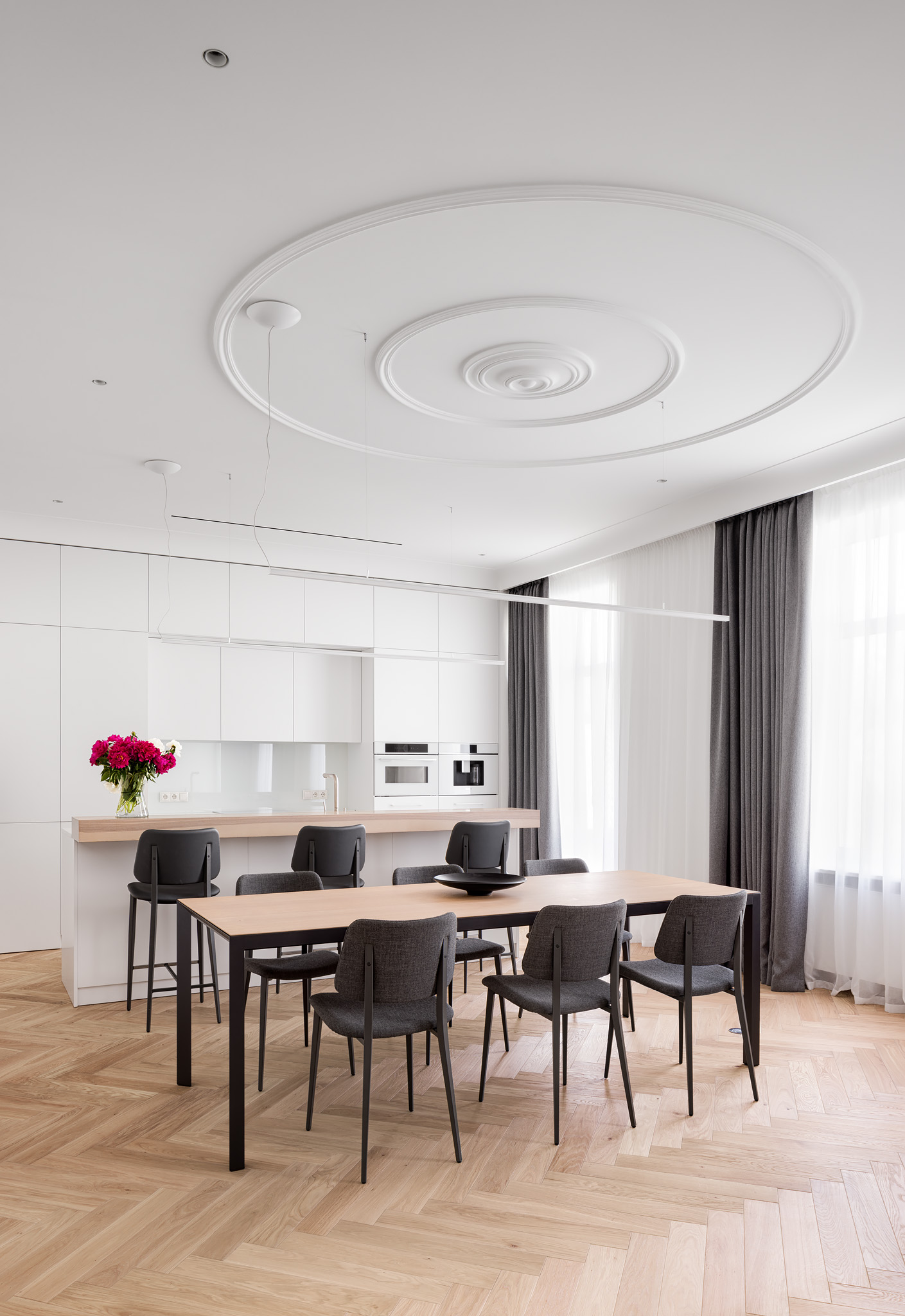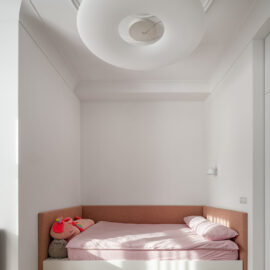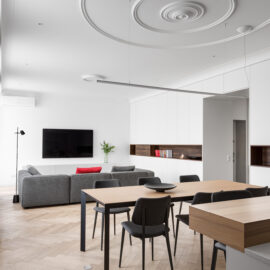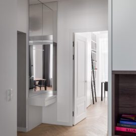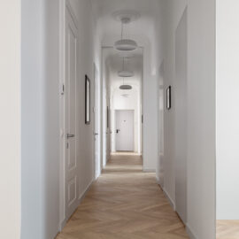 Новий дизайн простору відновлює історію цієї квартири на рівні спогадів та асоціацій. На це надихнули теплі спогади дитинства, що були проведені в дуже схожому за архітектурною стилістикою будинку. Це вже сучасне, іронічне трактування історичного дизайну, що основане на дитячих враженнях.